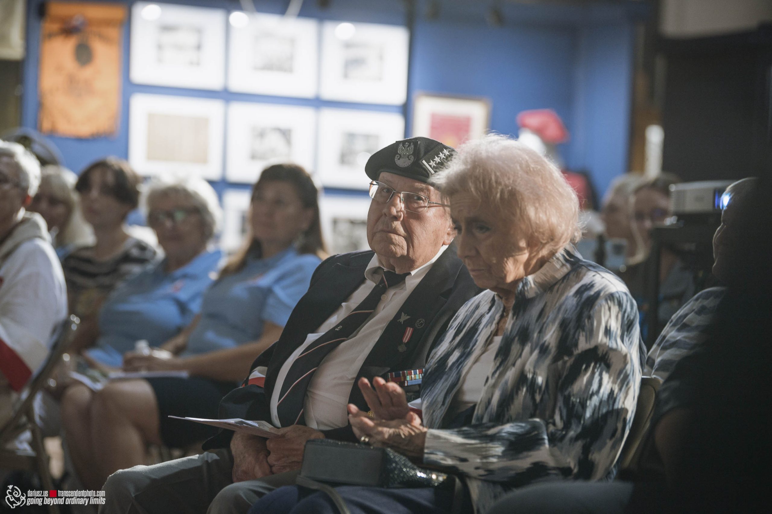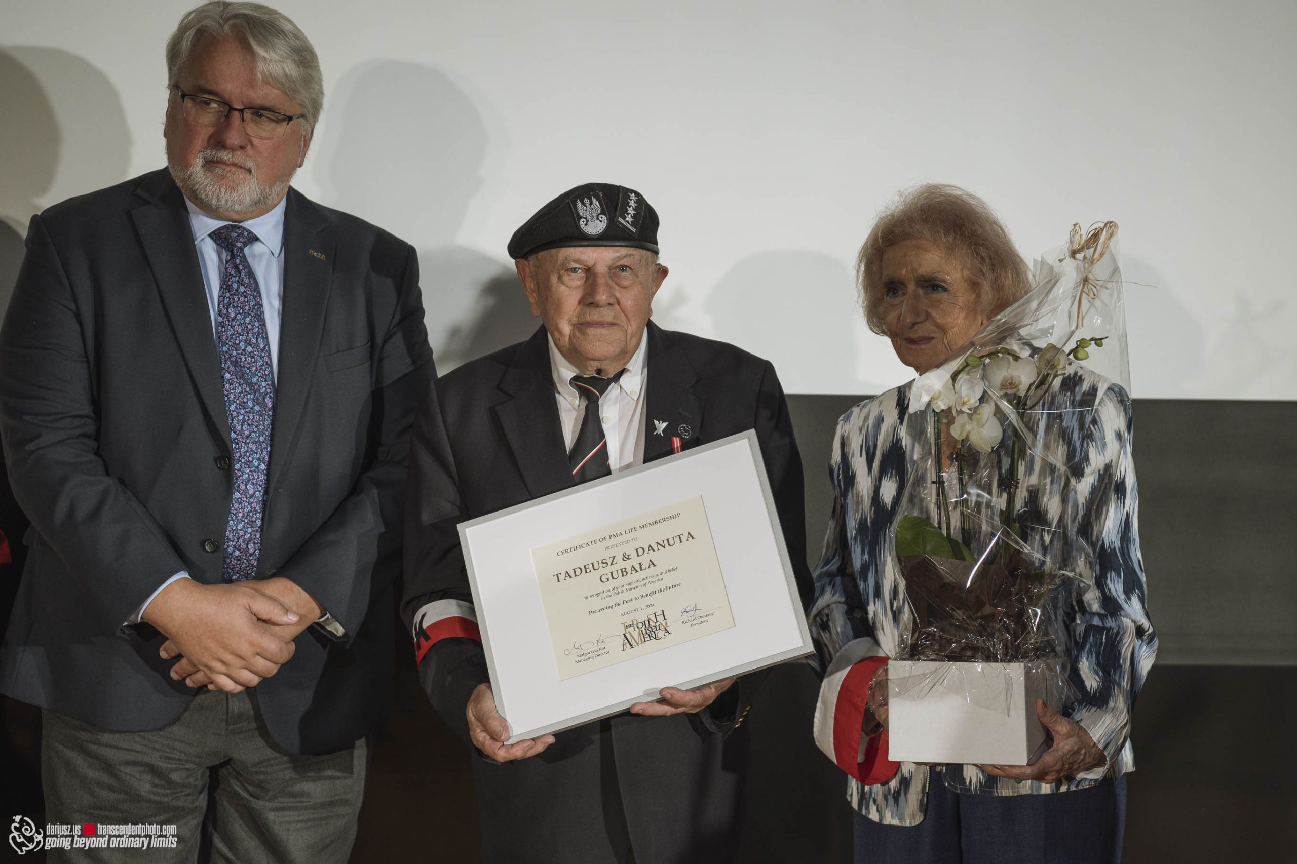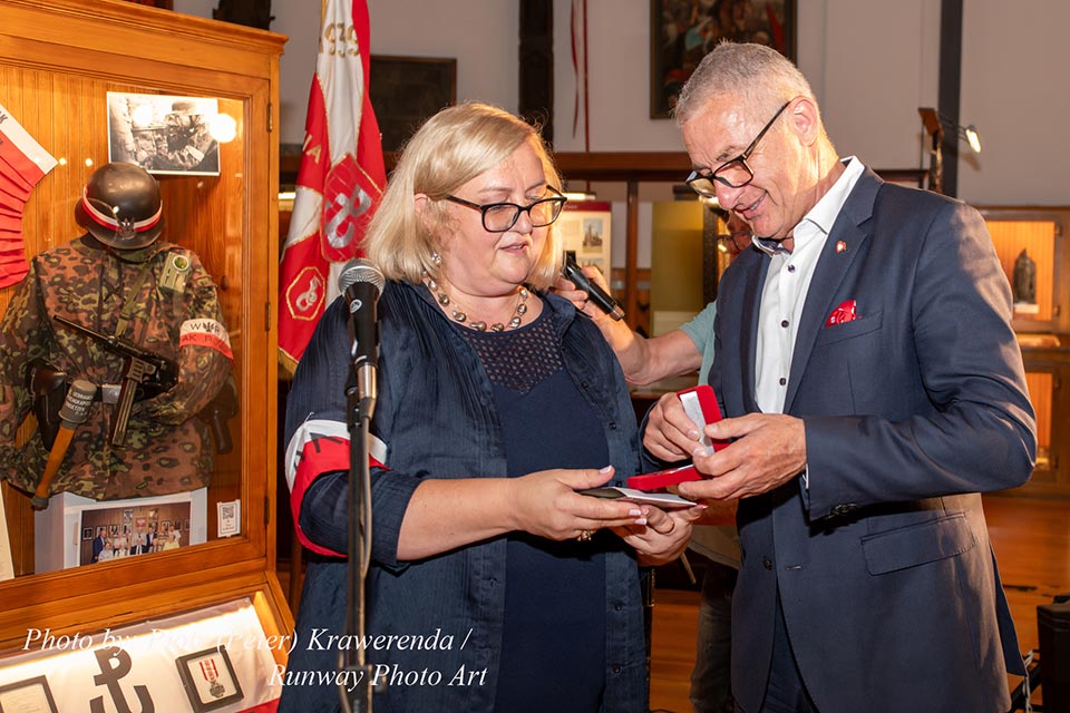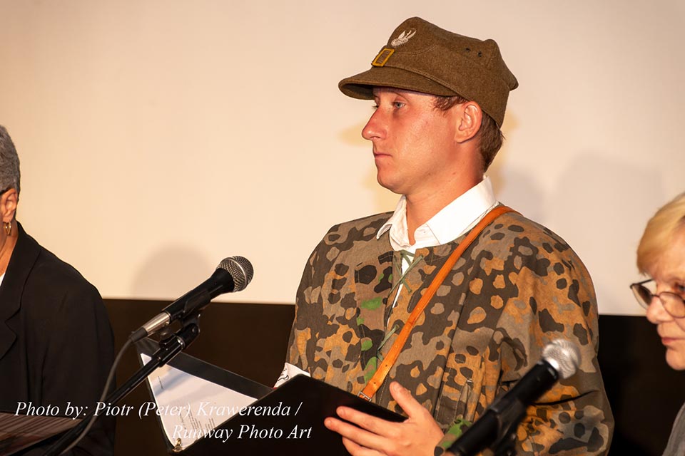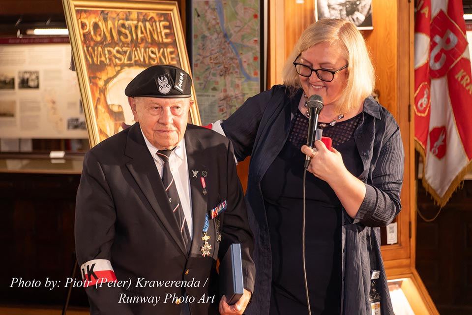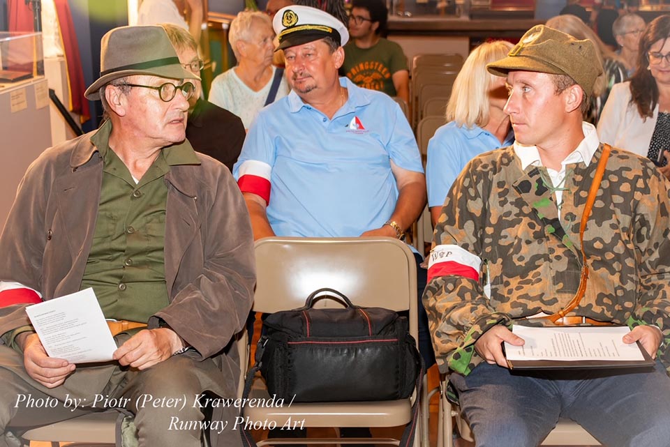 The commemoration included a poignant moment with the wailing of sirens to remember the W hour. After this moment, flowers and honorary lifetime museum memberships were presented to Mr. Gubała and his wife Danuta. This was followed by a film screening by Jan Lorys and Pawel Grajnert titled “Today is the Day of Blood and Glory,” featuring 12 of our veterans, only 2 of whom remain, including Mr. Tadeusz Gubała. In the audience were two people connected to the uprising: Dr. Józef Mazurek, who survived the uprising as a small child, and Andrzej Sciwiarski, the grandson and son of insurgents, who were given a chance to speak.