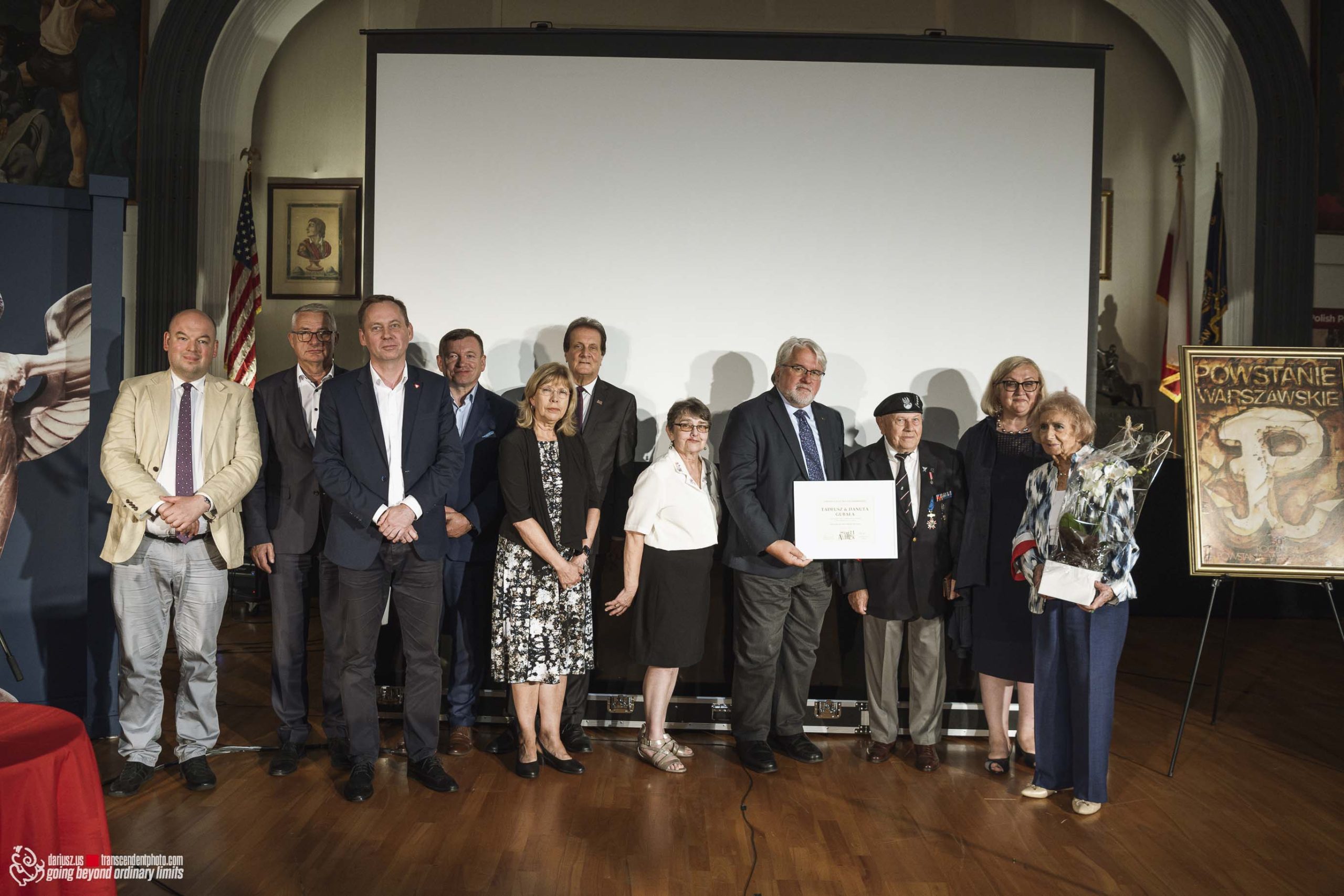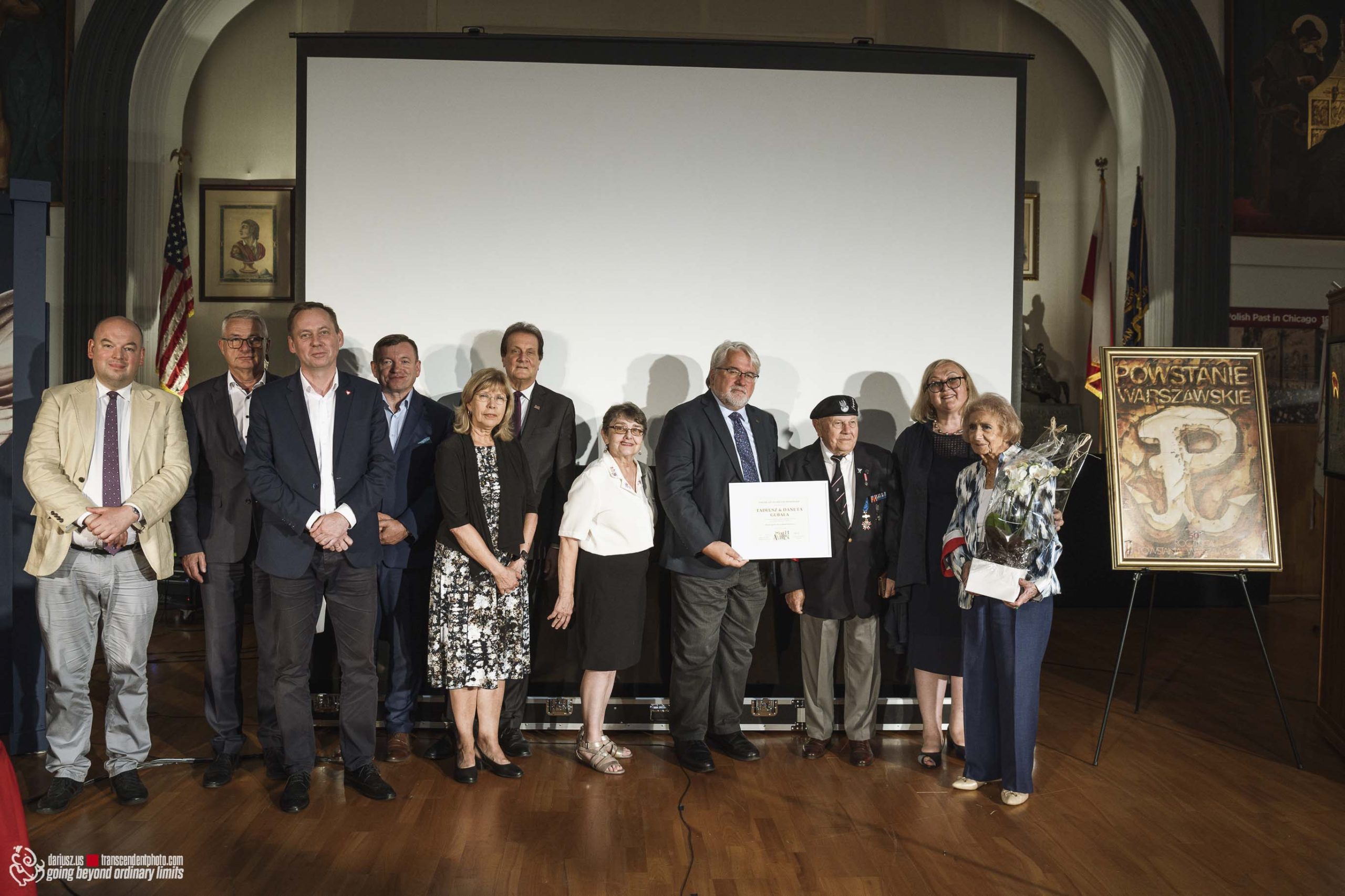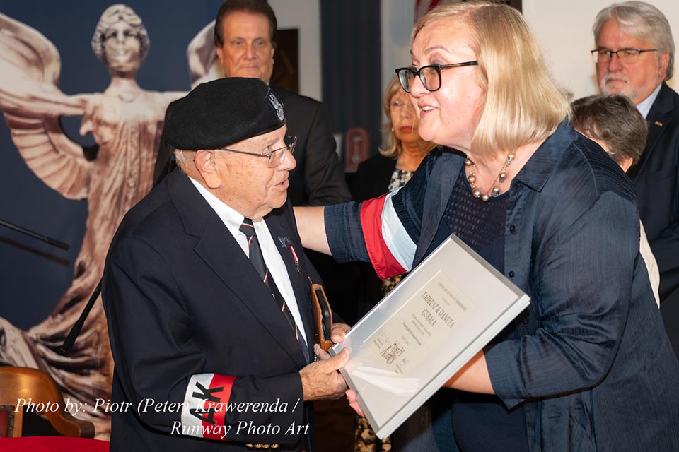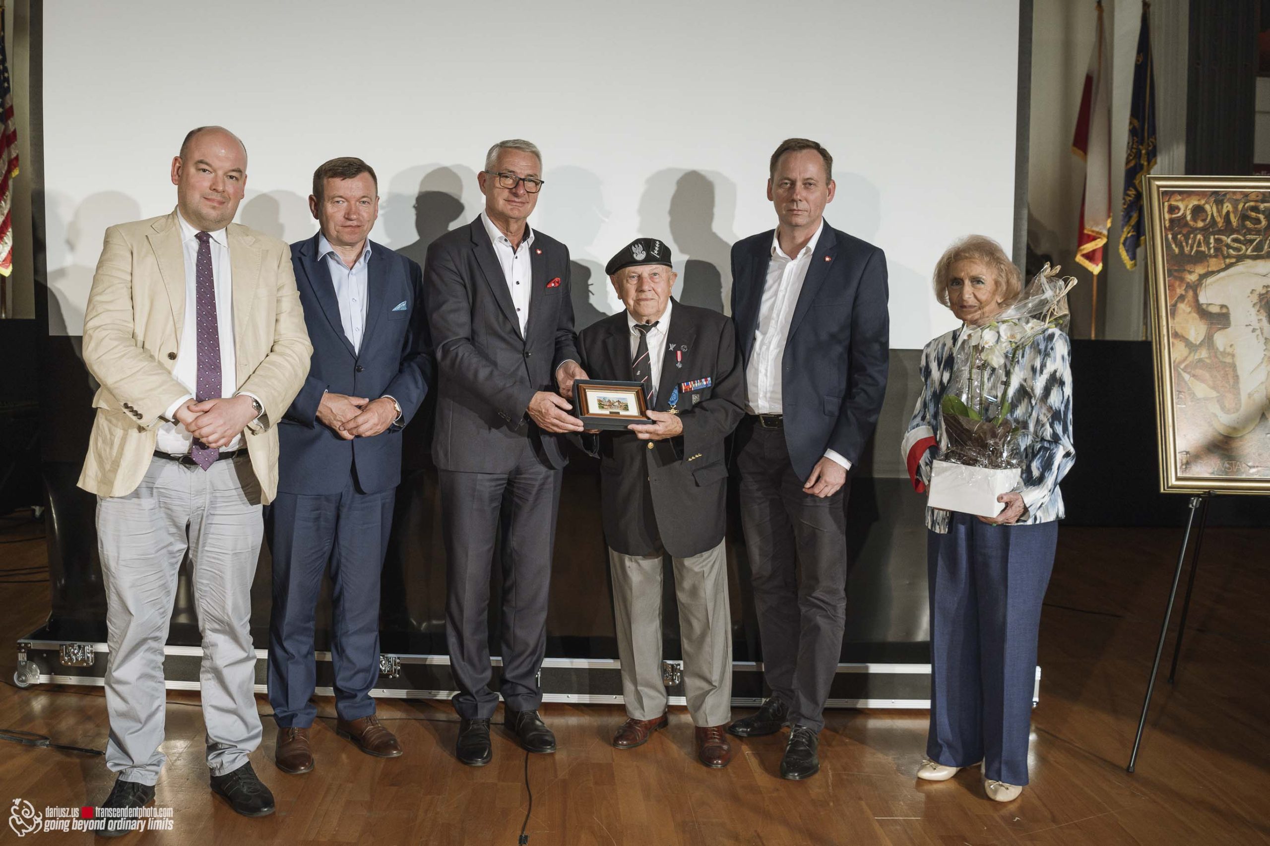 The commemoration included a poignant moment with the wailing of sirens to remember the W hour. After this moment, flowers and honorary lifetime museum memberships were presented to Mr. Gubała and his wife Danuta. This was followed by a film screening by Jan Lorys and Pawel Grajnert titled “Today is the Day of Blood and Glory,” featuring 12 of our veterans, only 2 of whom remain, including Mr. Tadeusz Gubała. In the audience were two people connected to the uprising: Dr. Józef Mazurek, who survived the uprising as a small child, and Andrzej Sciwiarski, the grandson and son of insurgents, who were given a chance to speak.