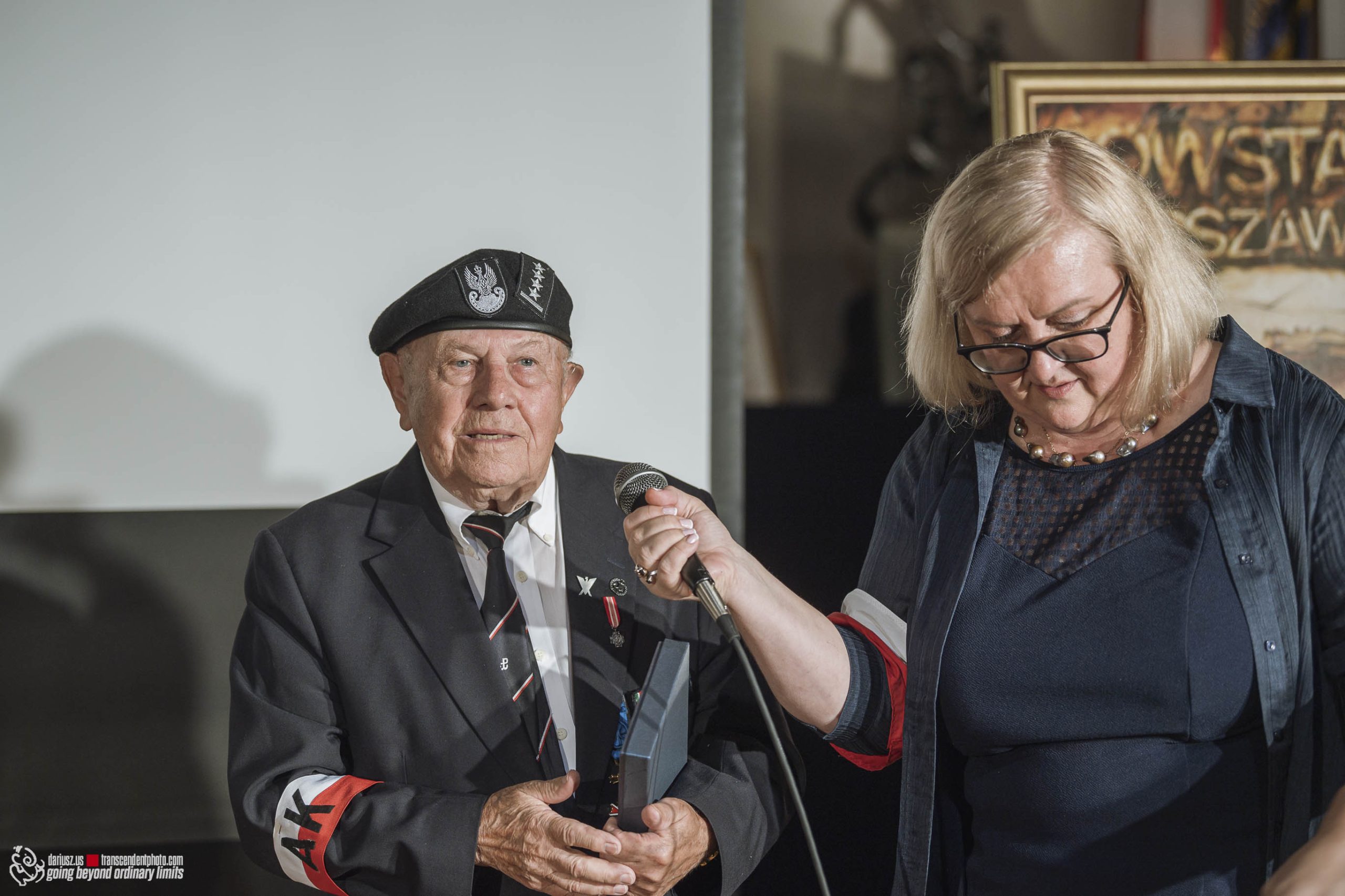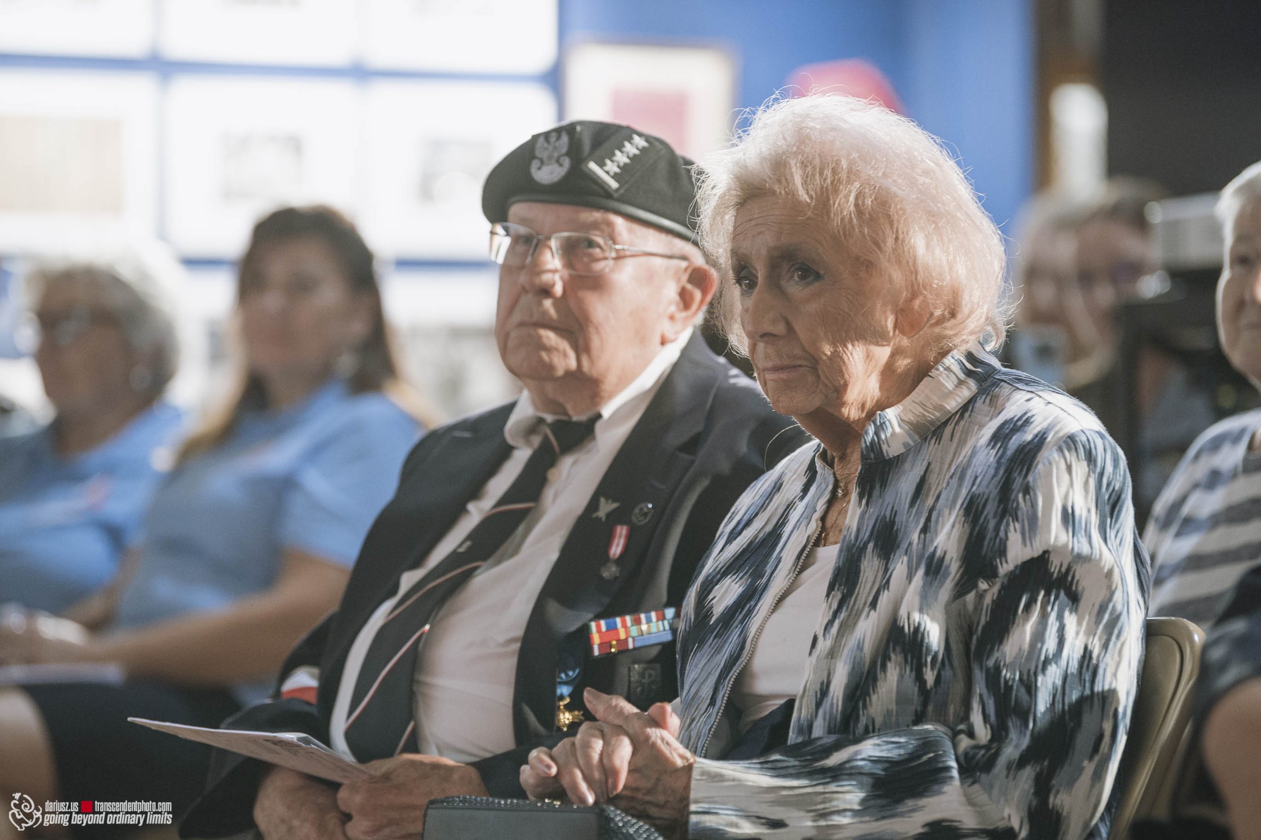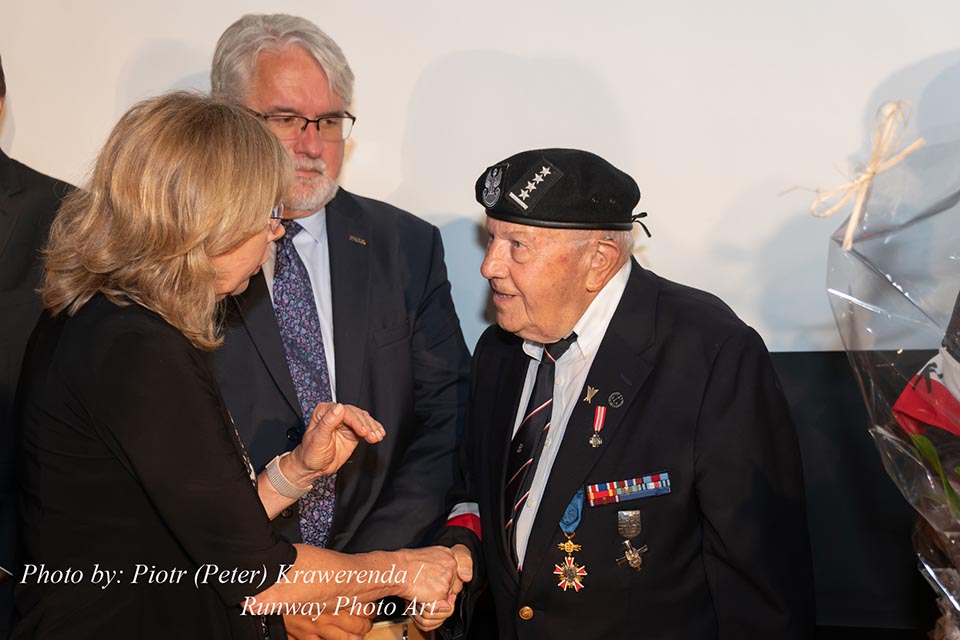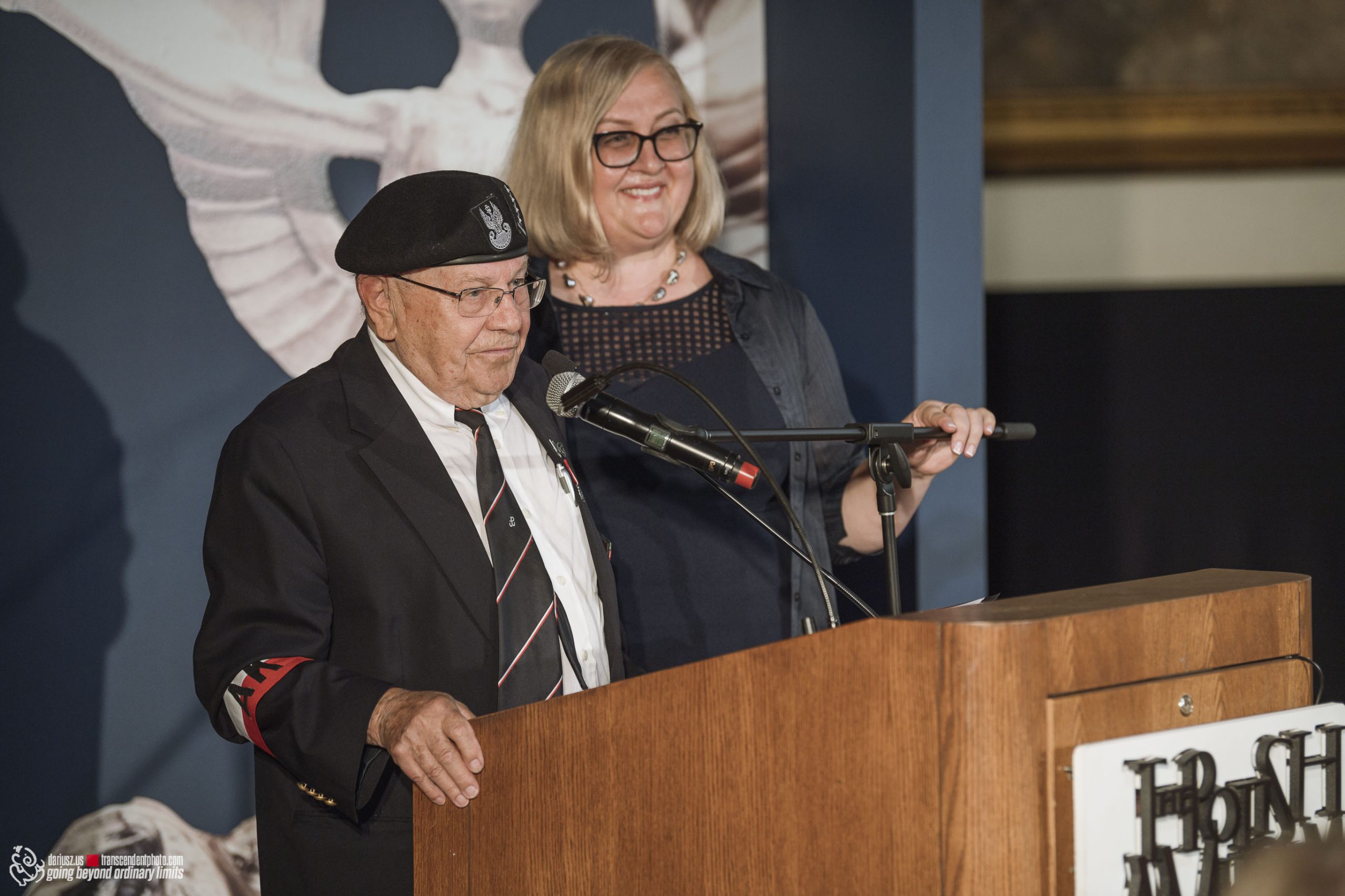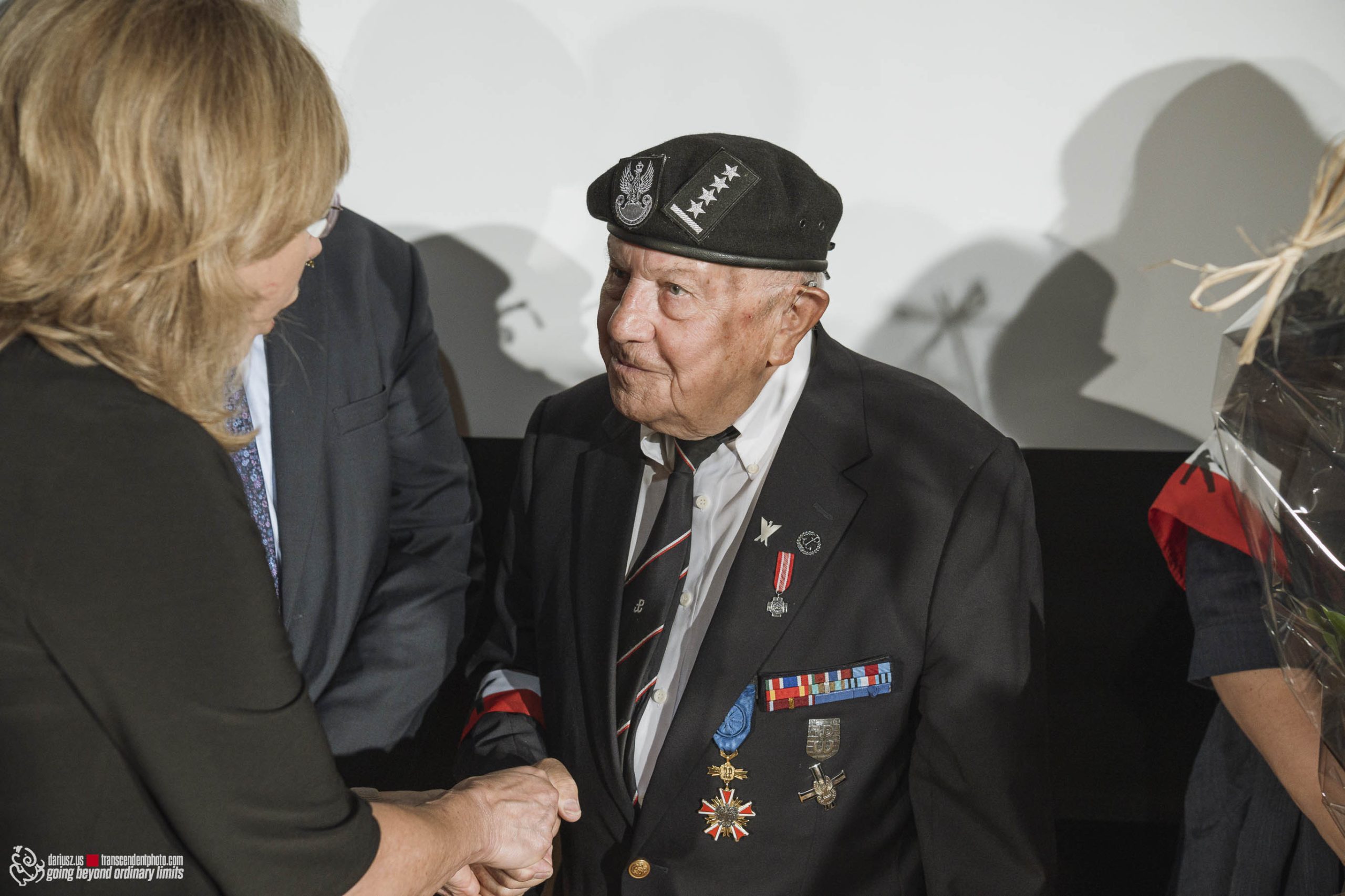 The commemoration included a poignant moment with the wailing of sirens to remember the W hour. After this moment, flowers and honorary lifetime museum memberships were presented to Mr. Gubała and his wife Danuta. This was followed by a film screening by Jan Lorys and Pawel Grajnert titled “Today is the Day of Blood and Glory,” featuring 12 of our veterans, only 2 of whom remain, including Mr. Tadeusz Gubała. In the audience were two people connected to the uprising: Dr. Józef Mazurek, who survived the uprising as a small child, and Andrzej Sciwiarski, the grandson and son of insurgents, who were given a chance to speak.