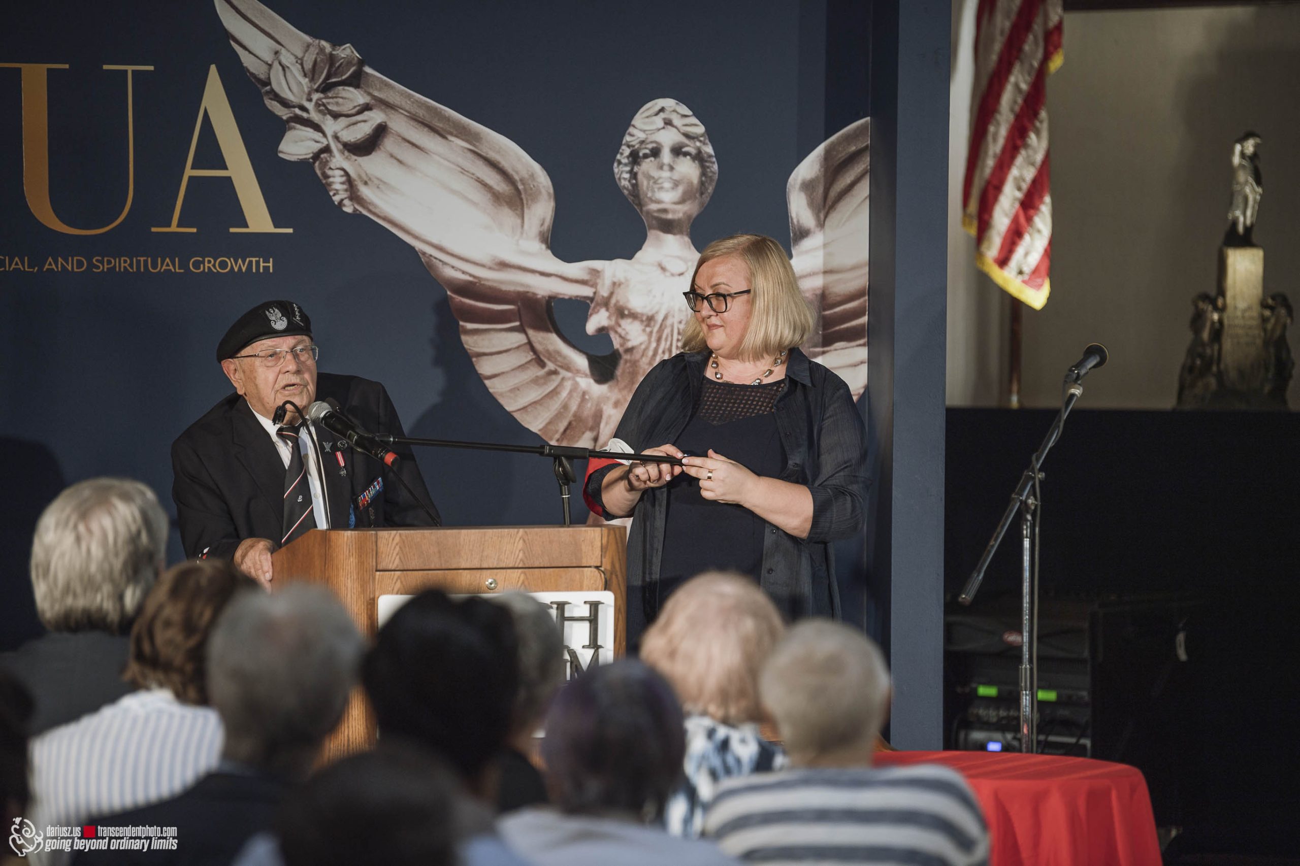 Keynote speaker Tadeusz Gubała shared his inspiring life story as a member of the Polish Home Army, a participant in the Warsaw Uprising, and a survivor of a Nazi labor camp. Attendees watched a powerful documentary, “The Warsaw Uprising 1944,” and listened to Lucie Bucki, Richard Owsiany, Małgorzata Kot, Daniel Rowicki, and Lidia Kowalewicz read selected texts by Mrs. Lusia. Lidia Kowalewicz’s mother, Lucyna Bielecka Jesionowska, pseudonym Lucy, was arrested during a church roundup, imprisoned in Pruszków, escaped, and reached a hospital in Podkowa Leśna.