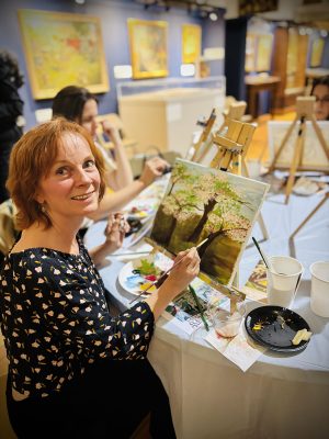 Wydarzenie zgromadziło miłośników sztuki na wyjątkowym wieczorze łączącym kreatywność, kulturę i relaks. Pod kierunkiem Patrycji Stepniak uczestnicy tworzyli własne obrazy inspirowane barwnym i charakterystycznym stylem artystki, w atmosferze sprzyjającej twórczej pracy.