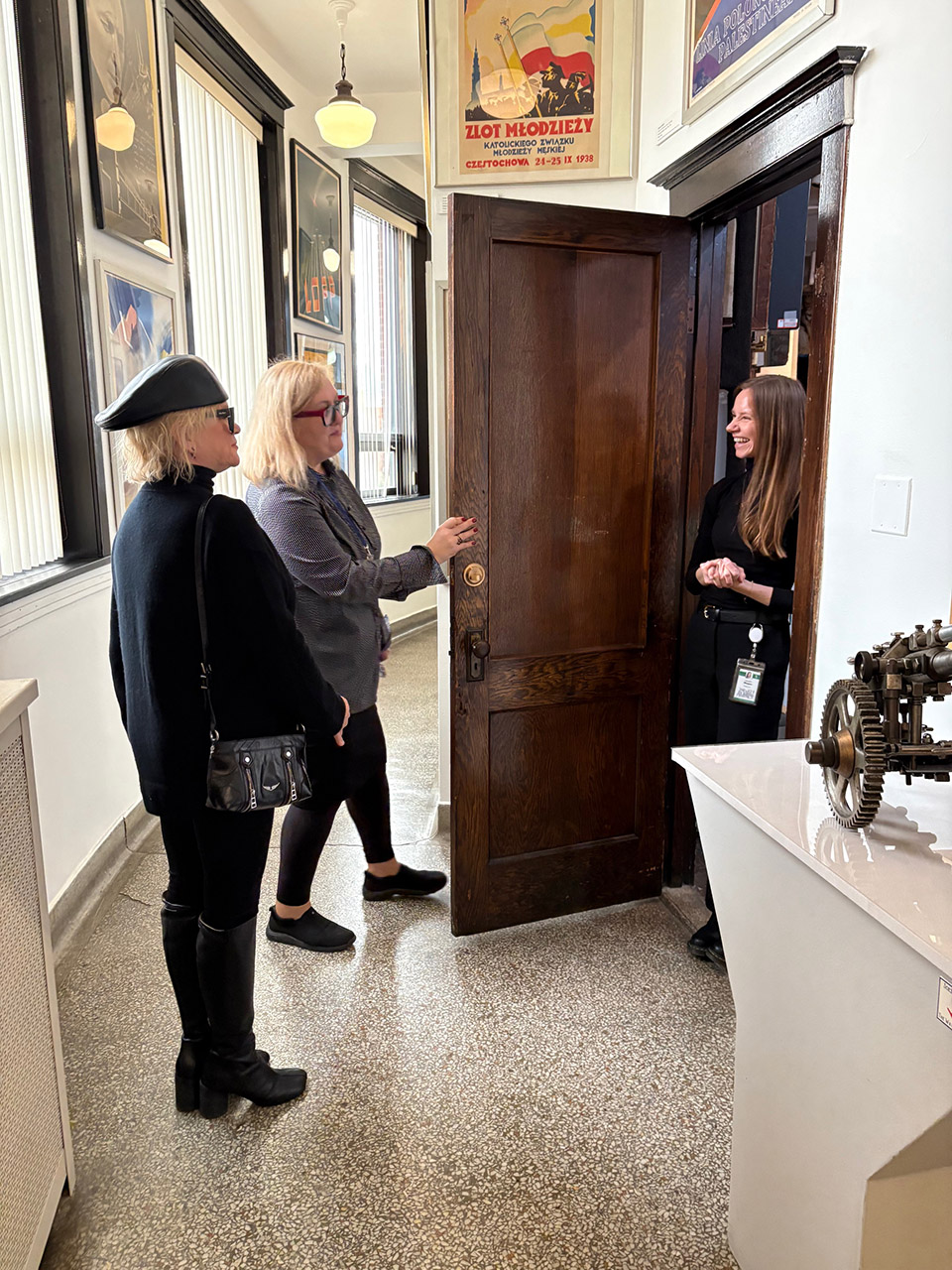 The Polish Museum of America had the pleasure of welcoming Katarzyna Figura, a well-known Polish actress. Ms. Figura, visiting Chicago for the “Ball with the Stars Na Polskim Trójkącie” organized by Wydawnictwo Evergreen, toured our collections and showed great interest in the history, art and heritage preserved at the PMA.