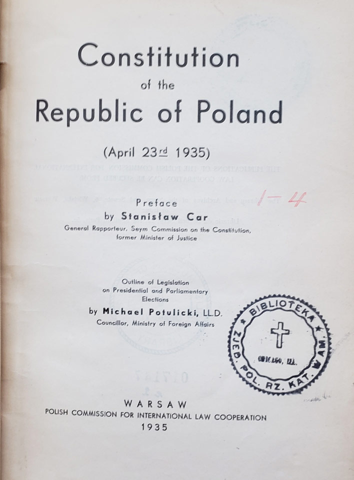 Today April 23 we acknowledge the April 1935 Polish Constitution.