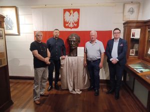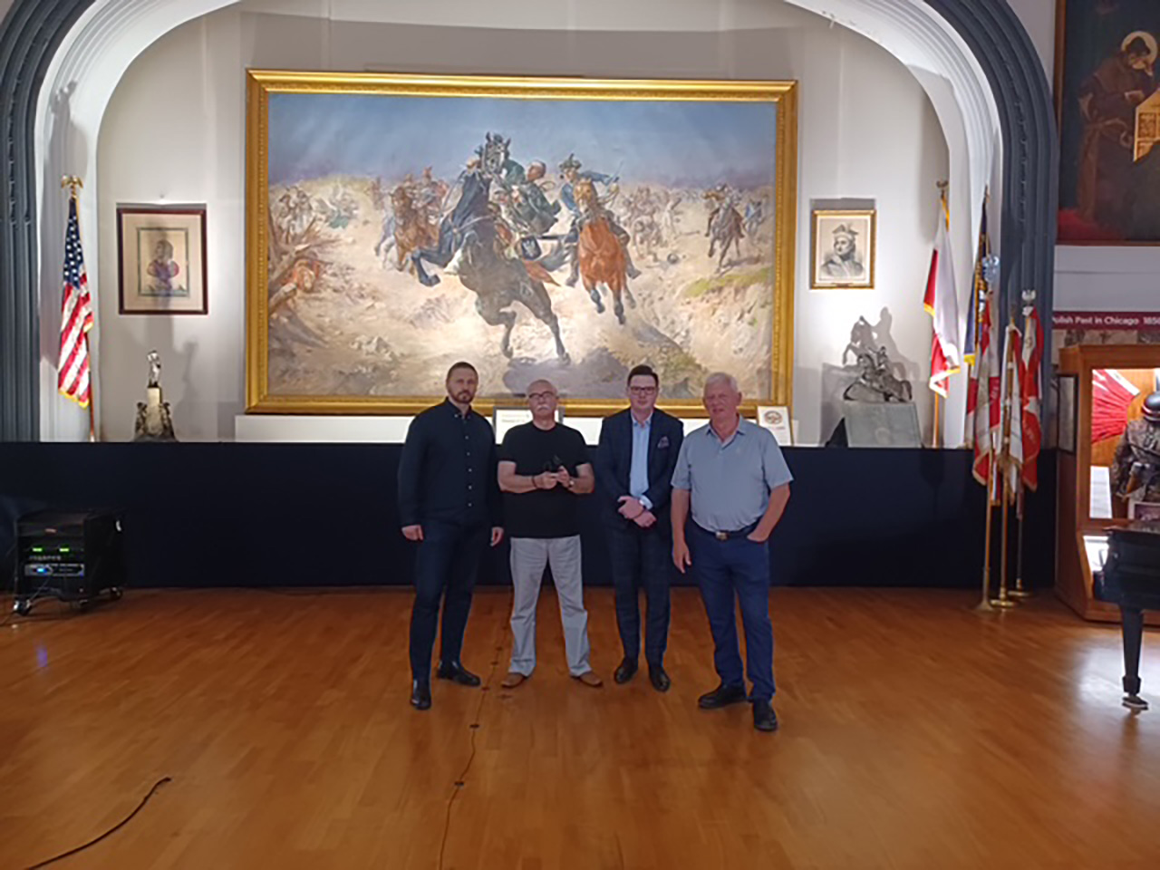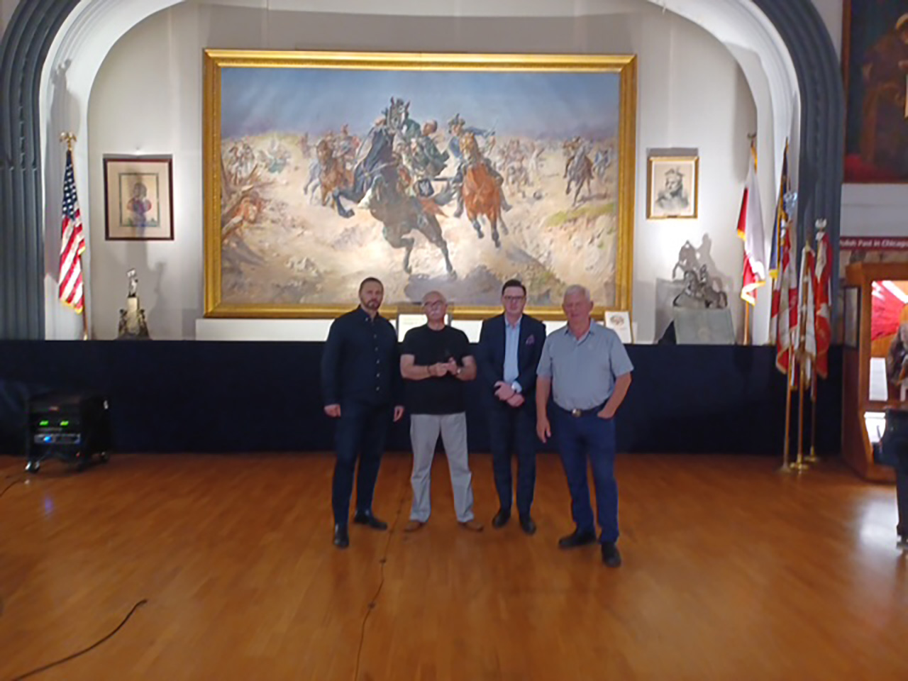 W sobotę, 4 października Muzeum Polskie w Ameryce gościło Tomasza Startka, wieczystego członka muzeum, Janusza Hanasa, producenta i reżysera Lubelskiej Wytwórni Filmowej, Michała Chorosińskiego, dyrektora Centrum Spotkania Kultur w Lublinie i reżysera Koronacji oraz Tomasza Tokarskiego, wicedyrektora Centrum Spotkania Kultur w Lublinie. Wycieczkę prowadził Sergio Romero, który zapoznał ich z najważniejszymi eksponatami w muzeum, takimi jak Symbol Polski Odrodzonej z Wystawy Światowej 1939 roku, obraz Stanisława Batowskiego Pułaski pod Savannah oraz złote pióro, którym Paderewski podpisał Traktat Wersalski.