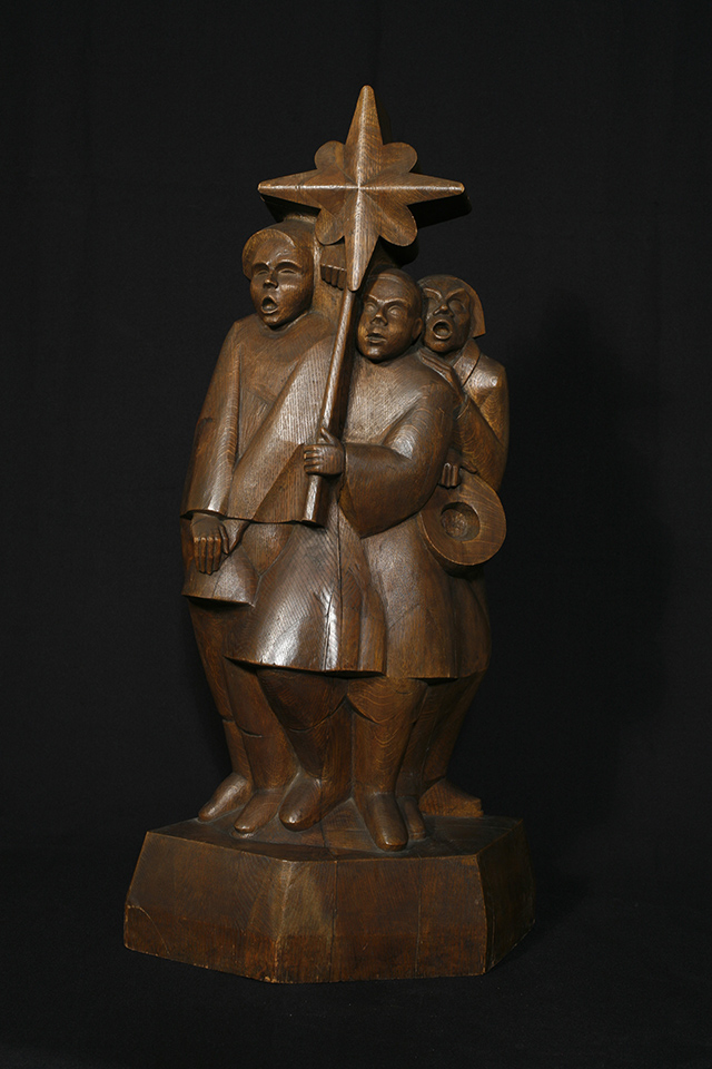 This enchanting wooden carving from the 1939 New York World's Fair Collection features figures of three of carol singers, capturing the spirit of the season with intricate details.