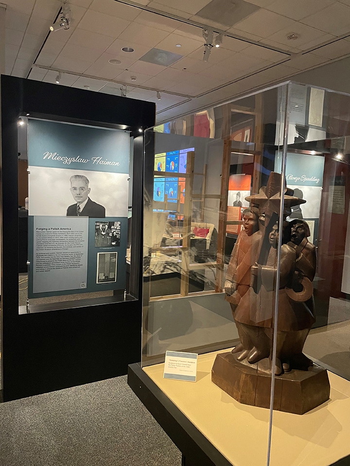 A heartfelt Thank You to Research Historian Jacob K. Friefeld, PhD, and the entire exhibition team, for their vision and featuring “Carolers” at the "Here I Have Lived – Home in Illinois" Exhibition at the Abraham Lincoln Presidential Library and Museum, Springfield, Illinois, from March 2023 to January 2024. In addition to the loaned sculpture, the Exhibition featured a panel highlighting the importance of Mieczysław Haiman, the first curator of the Polish Museum of America and his efforts to preserve the items from the Fair, purchasing and housing them at the PMA.