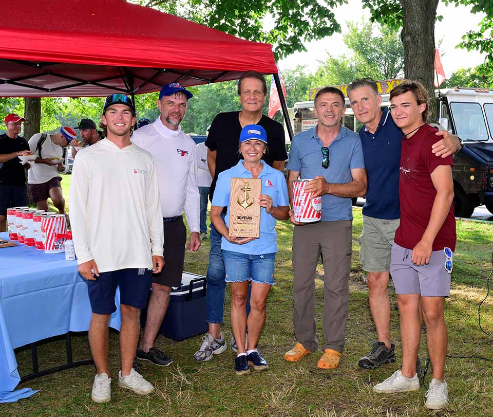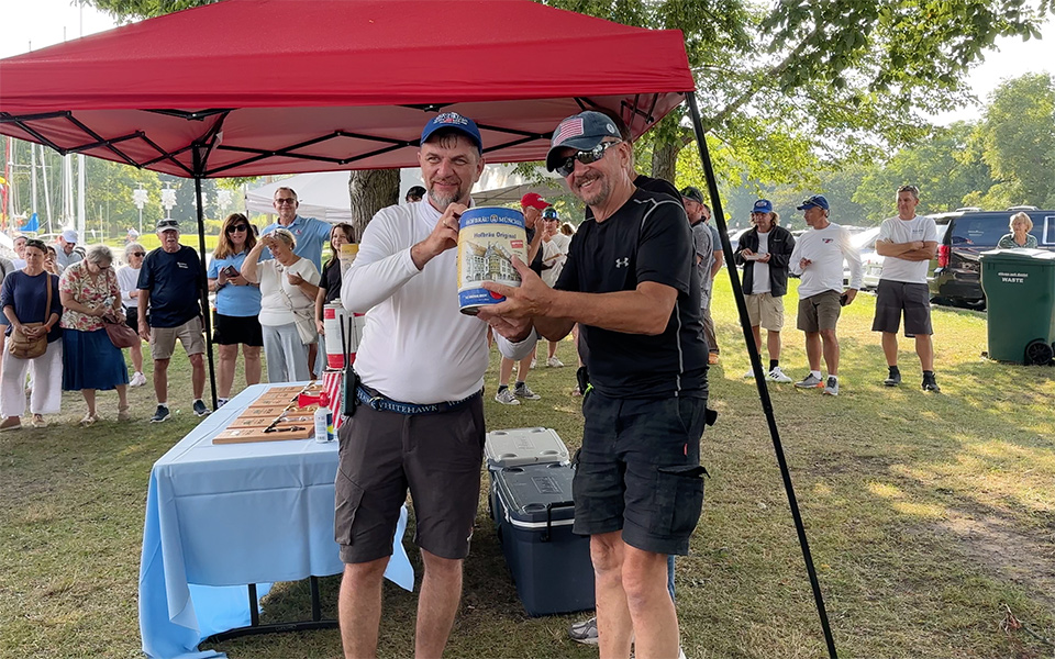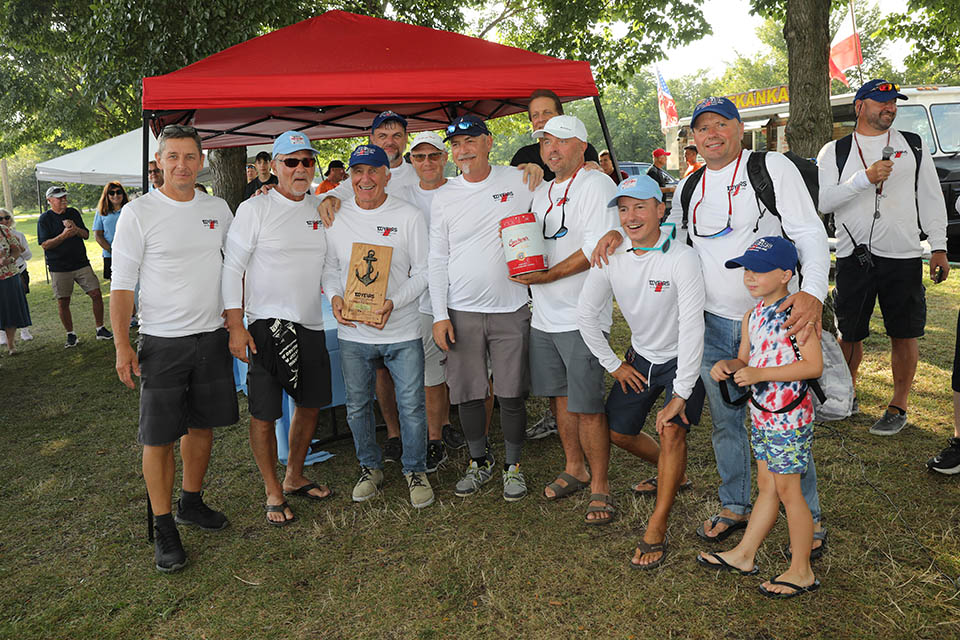 Prezes MPA, Richard Owsiany, wręczył nagrody w momencie, gdy słońce wyjrzało zza chmur, wprowadzając ciepło do ceremonii. Pomimo opadów, niebo rozpogodziło się na czas magicznego występu polsko-amerykańskiej grupy szantowej Młynn. Nasi żeglarze, zawsze cierpliwi wobec kaprysów pogody, zgromadzili się na niezapomniane wspólne śpiewanie, prowadzone przez Piotra Rogalskiego na gitarze akustycznej, do którego dołączyła pani Helena Porębska, pięknie wykonując „Koło mojego domu” oraz „Gdzie ta keja.” Dariusz Stopka, który śpiewał z zespołem od samego początku, również wziął udział w koncercie zarówno w sobotę, jak i w niedzielę.