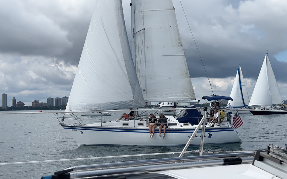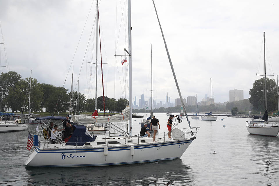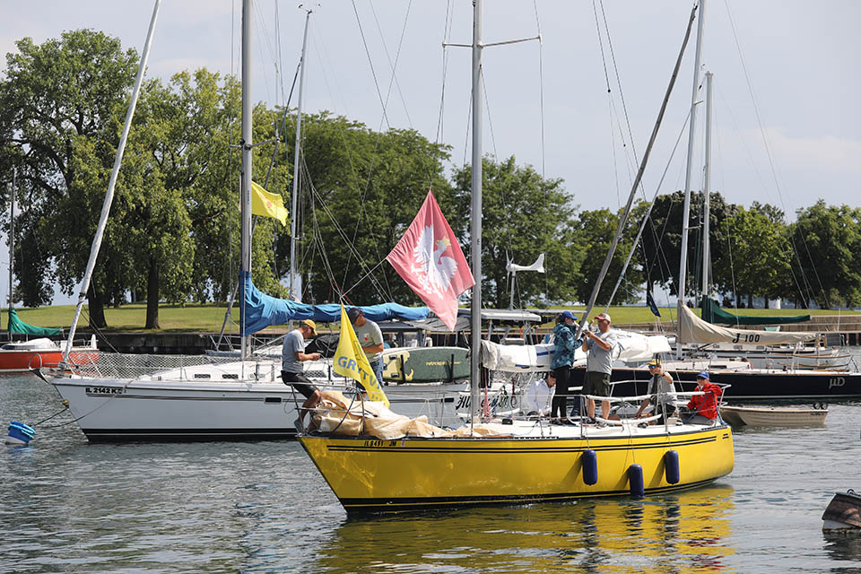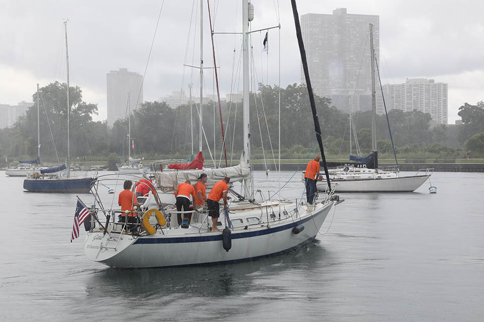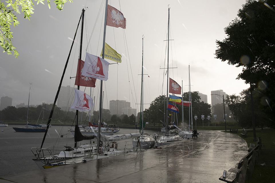Przy zakończeniu pokropił wszystkich deszcz. I tak z dobroczynnym żywiołem wody te historyczne regaty przeszły do historii żeglarstwa polonijnego w Chicago. Dziękujemy wszystkim, którzy uczynili to wydarzenie tak wyjątkowym, w tym Martinowi Kozie za pełnienie roli łącznika z Montrose Harbor oraz gościom z Polski. Gratulacje dla wszystkich łodzi, które wzięły udział w tej niezapomnianej regacie!
