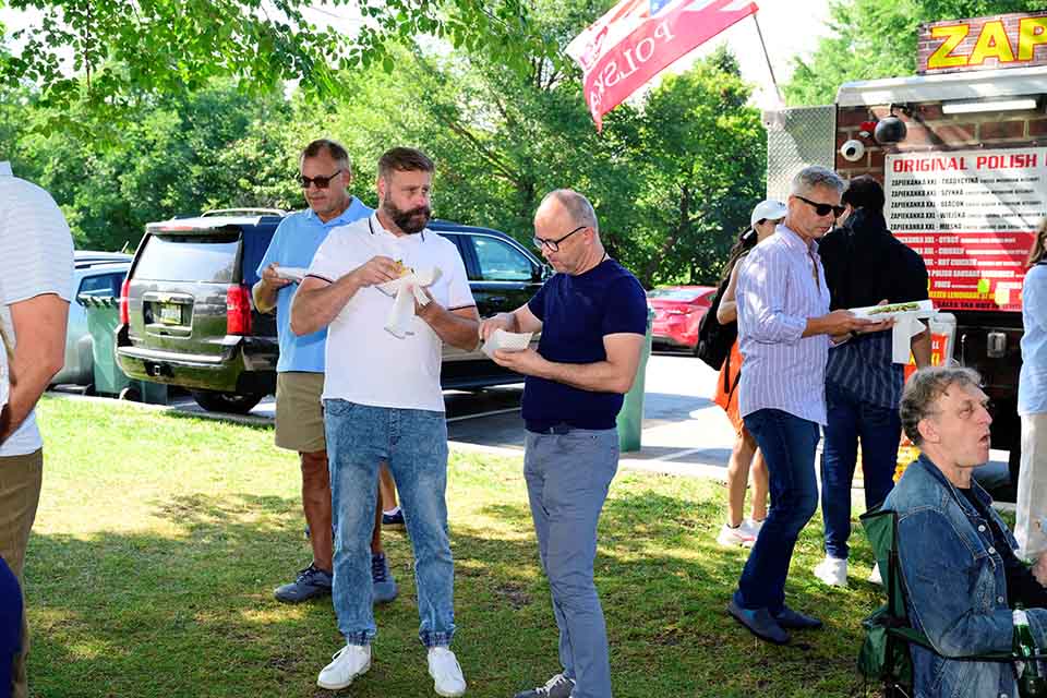 PMA President Richard Owsiany presented the awards just as the sun broke through the clouds, bringing warmth to the ceremony. Despite some rain, the skies cleared in time for a magical performance by the Polish shanty band Młynn. Our sailors, ever patient with the weather, gathered for an unforgettable sing-along, led by Piotr Rogalski on acoustic guitar and joined by Ms. Helena Porębska, who beautifully sang “Koło mojego domu” and “Gdzie ta keja.” Dariusz Stopka, who had sung with the band from the beginning, also participated in the concert on both Saturday and Sunday.