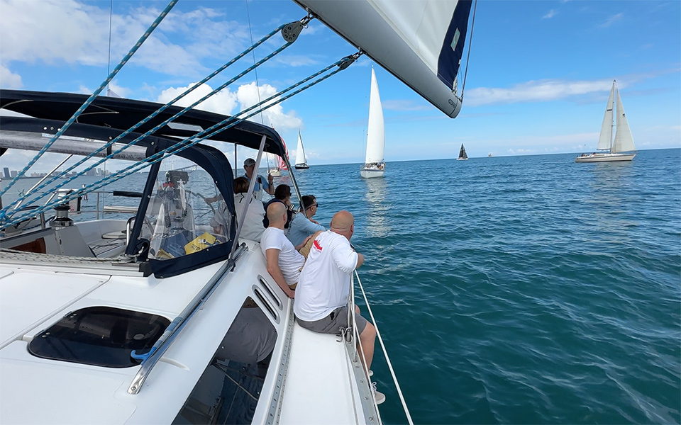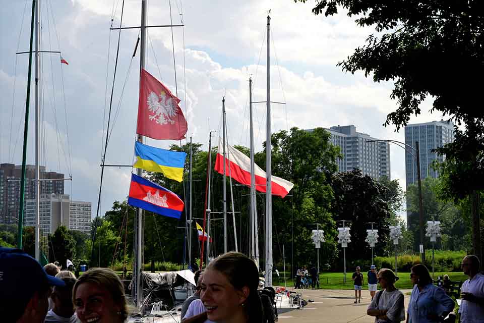 Famous Martin Koza, who cooperates with the Chicago Corinthian Yacht Club, served as a liaison with Montrose Harbor and led the regatta committee as judge. We want to thank him for his exceptional role and express our gratitude to both him and Montrose Harbor for their cooperation. He was assisted by PMA Managing Director Małgorzata Kot, Renata Kordek, Marcin Wolski, and Piotr Sieńko, who provided the committee motorboat.