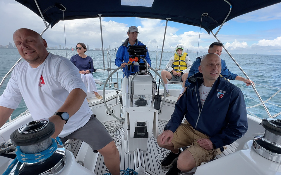 Thanks to the meticulous planning of organizer Bogdan Ogórek and his sailing family, everything was flawlessly executed. Bogdan Ogórek, serving as regatta coordinator, cruised the course on a flying pontoon captained by Gary Murino.