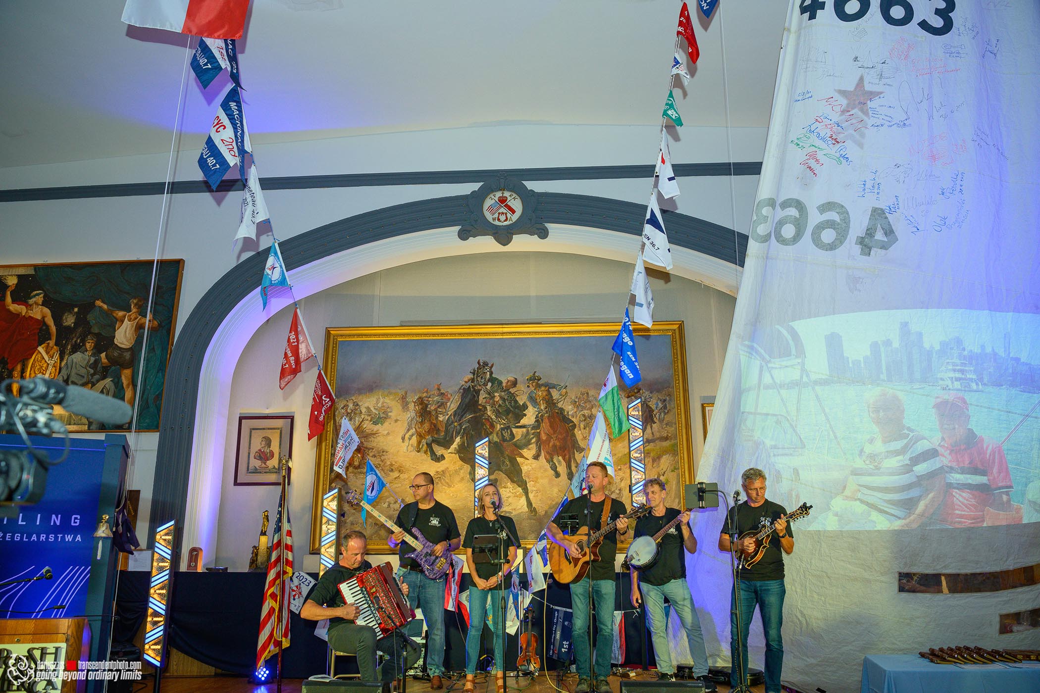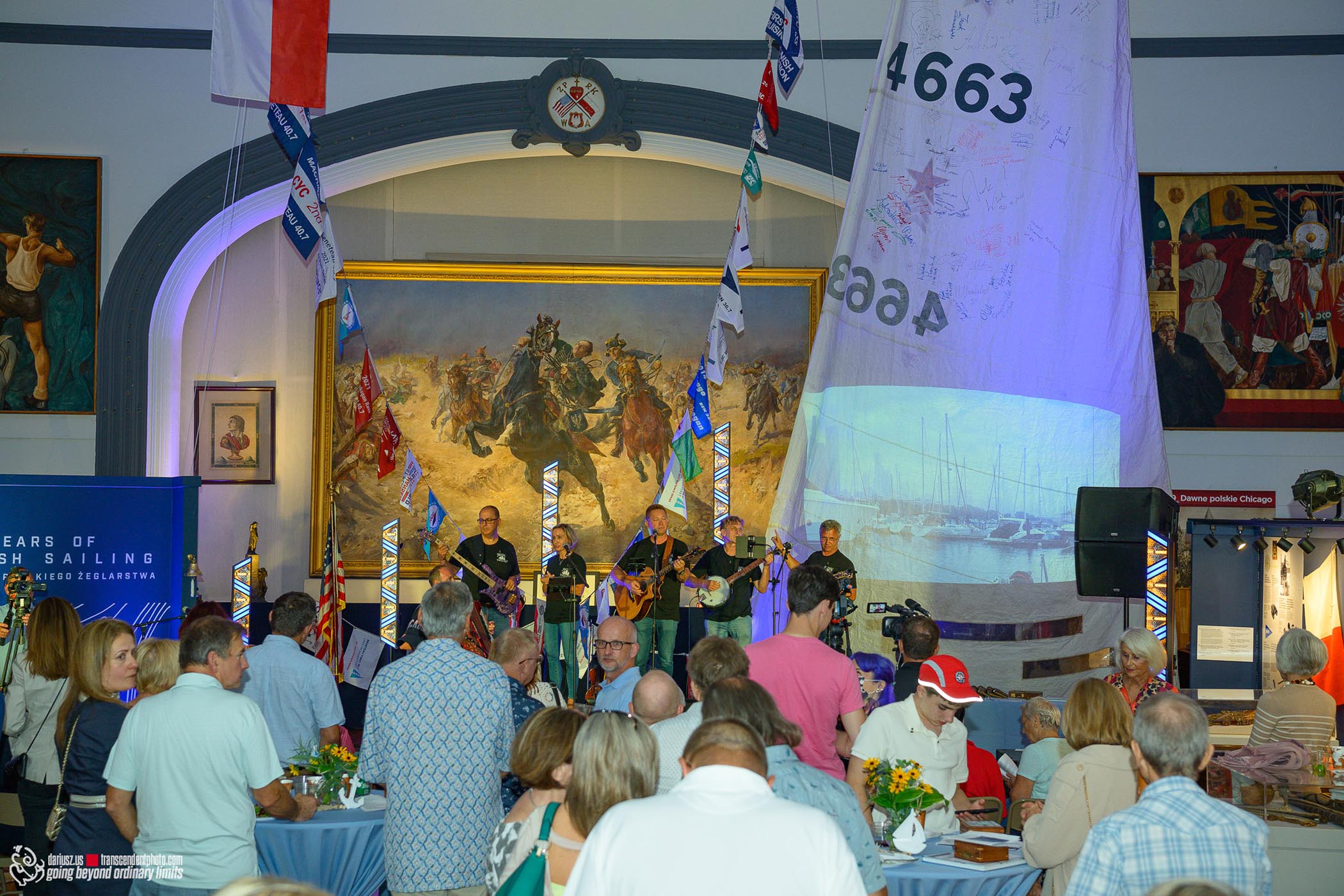 Uroczystość trwała dalej w radosnej atmosferze, gdy wszyscy wspólnie kroili tort i śpiewali szanty, które wprowadziły zebranych w prawdziwie żeglarski nastrój. Muzyczną oprawę zapewnił zespół Młynn, pierwszy polsko-amerykański zespół szantowy w Stanach Zjednoczonych, który zachwycił swoją energią i autentycznością. Wśród wykonanych utworów była jedna z szant Jerzego Porębskiego, zaśpiewana przez jego żonę, Helenę Porębską, co dodało chwili wyjątkowej głębi. Pamiątki po Jerzym Porębskim zostały również uwiecznione na wystawie i przekazane do archiwum MPA, aby przyszłe pokolenia mogły je podziwiać.