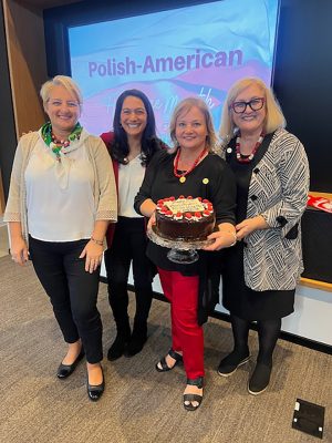 The Polish Museum of America was proud to have our Managing Director, Małgorzata Kot, as a featured guest speaker at the Lunch & Learn event held at the Western Golf Association / Evans Scholars Foundation headquarters. The program, hosted by Jola Herdzik and Lindsay Dresser, offered an engaging discussion about the Polish American Heritage Month and the immigrant experience.