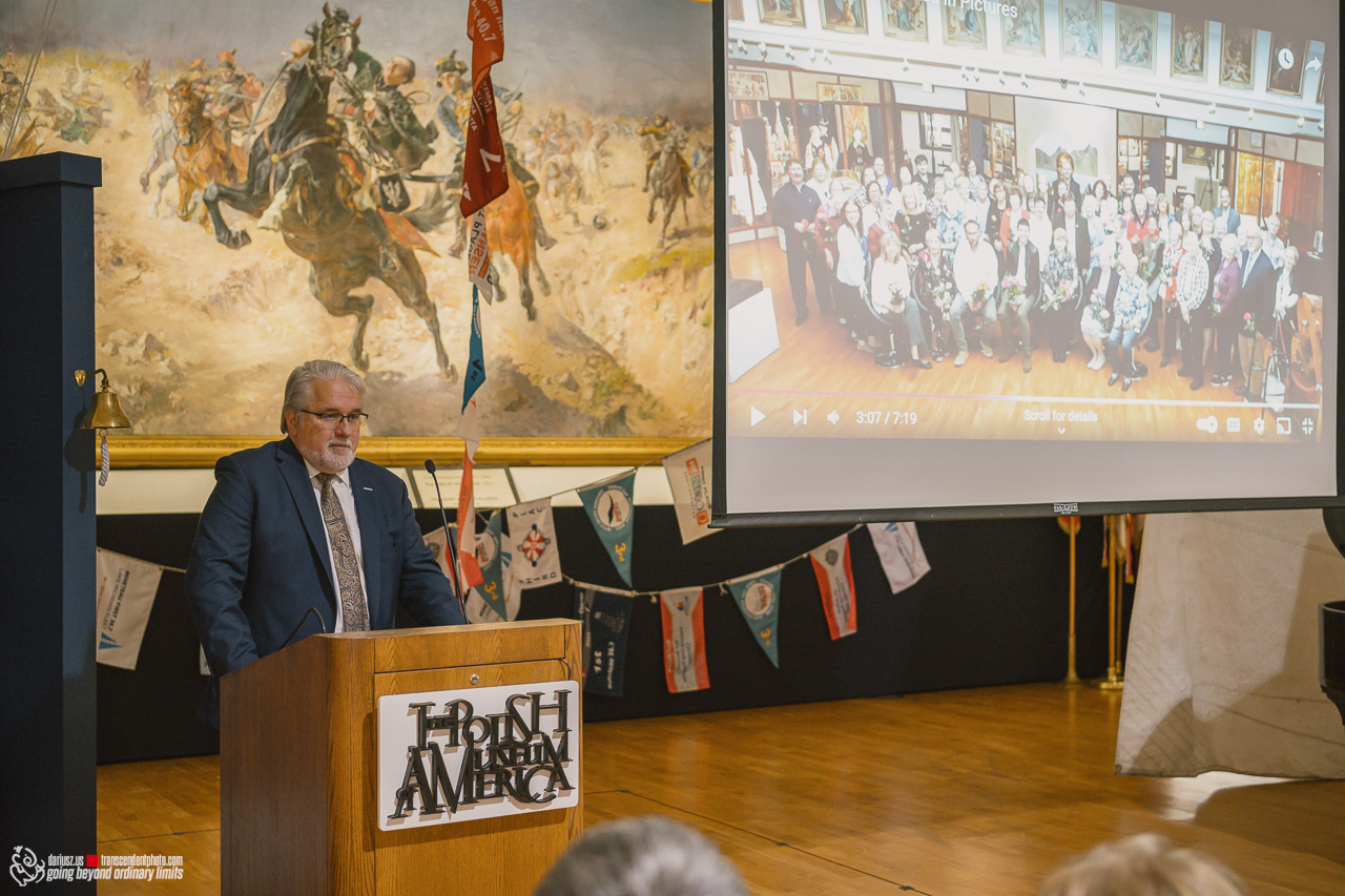Heartfelt tributes were given by PRCUA President James Robaczewski, PMA President Richard Owsiany, President of the Chicago Chapter of the Kosciuszko Foundation Lidia Filus, Polish National Alliance and Polish American Congress President Frank Spula, and Vice-Consul Tomasz Orczyk. Special guest Marek Skulimowski, National President and Executive Director of the Kosciuszko Foundation, also joined us, along with Maria Zakrzewska, Vice-President of the Chicago Chapter of the Kosciuszko Foundation, who presented the Museum with a special gift in celebration of this milestone: “The March” by W. S. Kuniczak. Additional honored guests included Joanna Radwańska-Williams and her mother, Professor Ewa Radwańska.