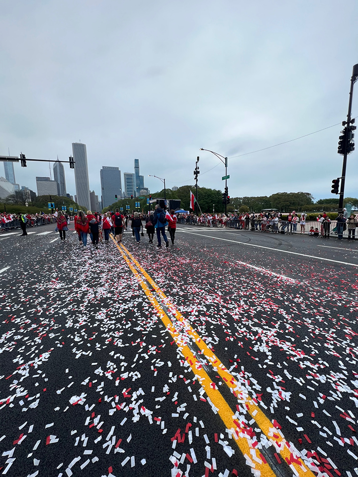 Since 1892, Chicago Polonia’s various community organizations, schools, bands and folk dancing groups have joined together to celebrate the Polish culture and tradition. This year once again, Downtown Chicago saw a stream of red and white, as everyone came out to show off their polish pride wearing Polish emblems. For years, the main organizer of the Parade has been the Polish Club Association.
