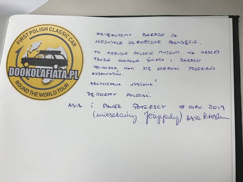 Ekipa dookolafiata.pl – Asia i Pawel Poterscy, którzy od listopada 2018 są w podróży dookoła świata Fiatem 125p zatrzymali się dziś w Muzeum! Wszystkiego dobrego!