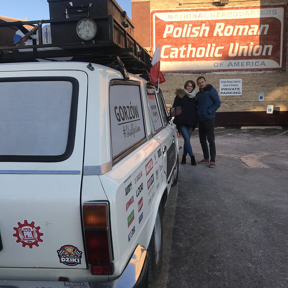 Asia and Pawel Poterski who have been traveling around the world since November 2018 in a Fiat 125p visited PMA today – Thank you – dookolafiata.pl!