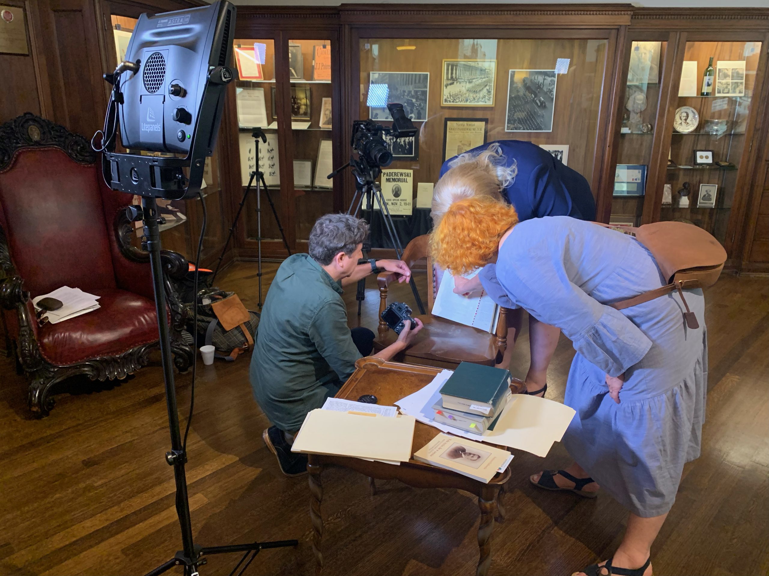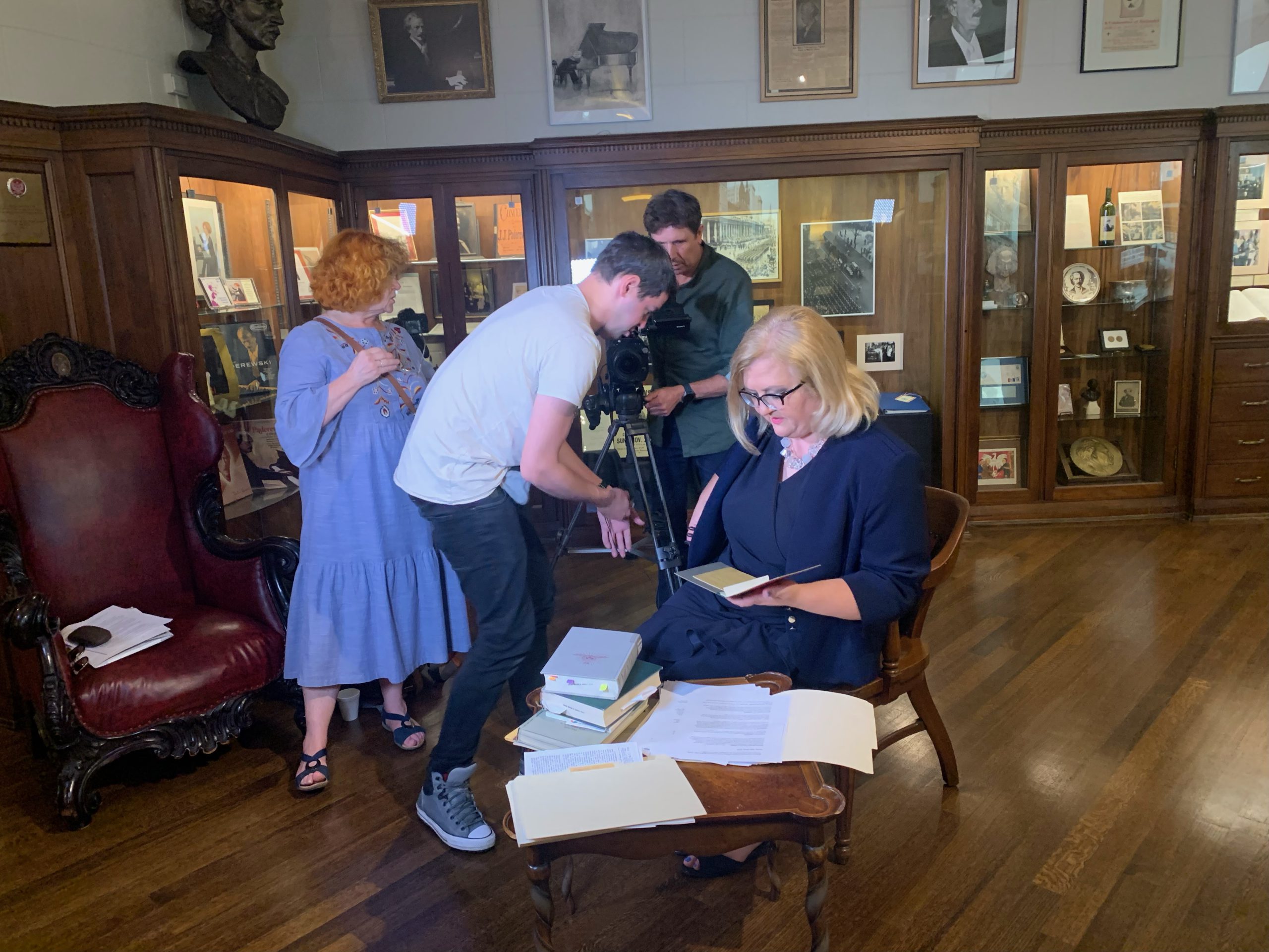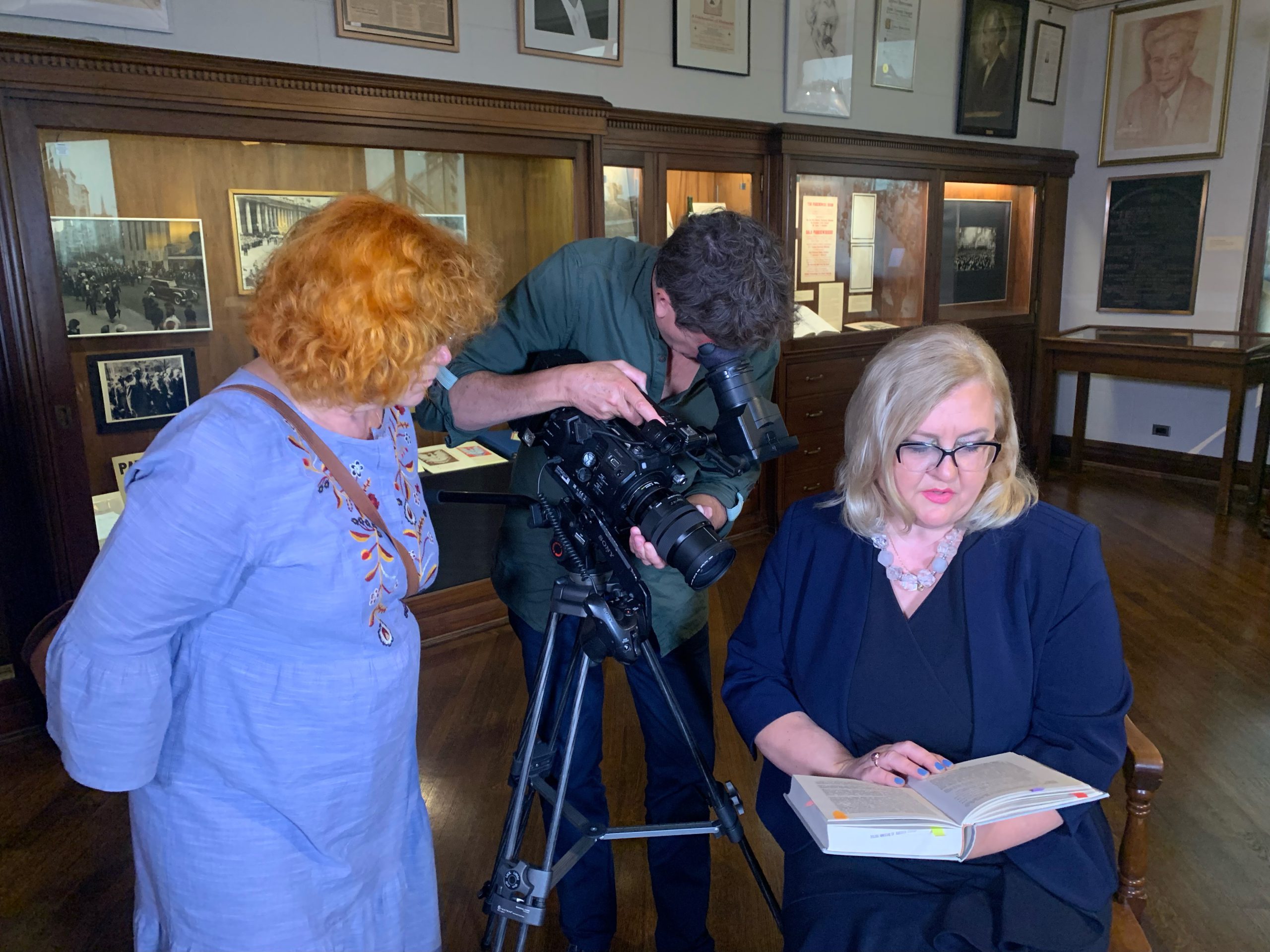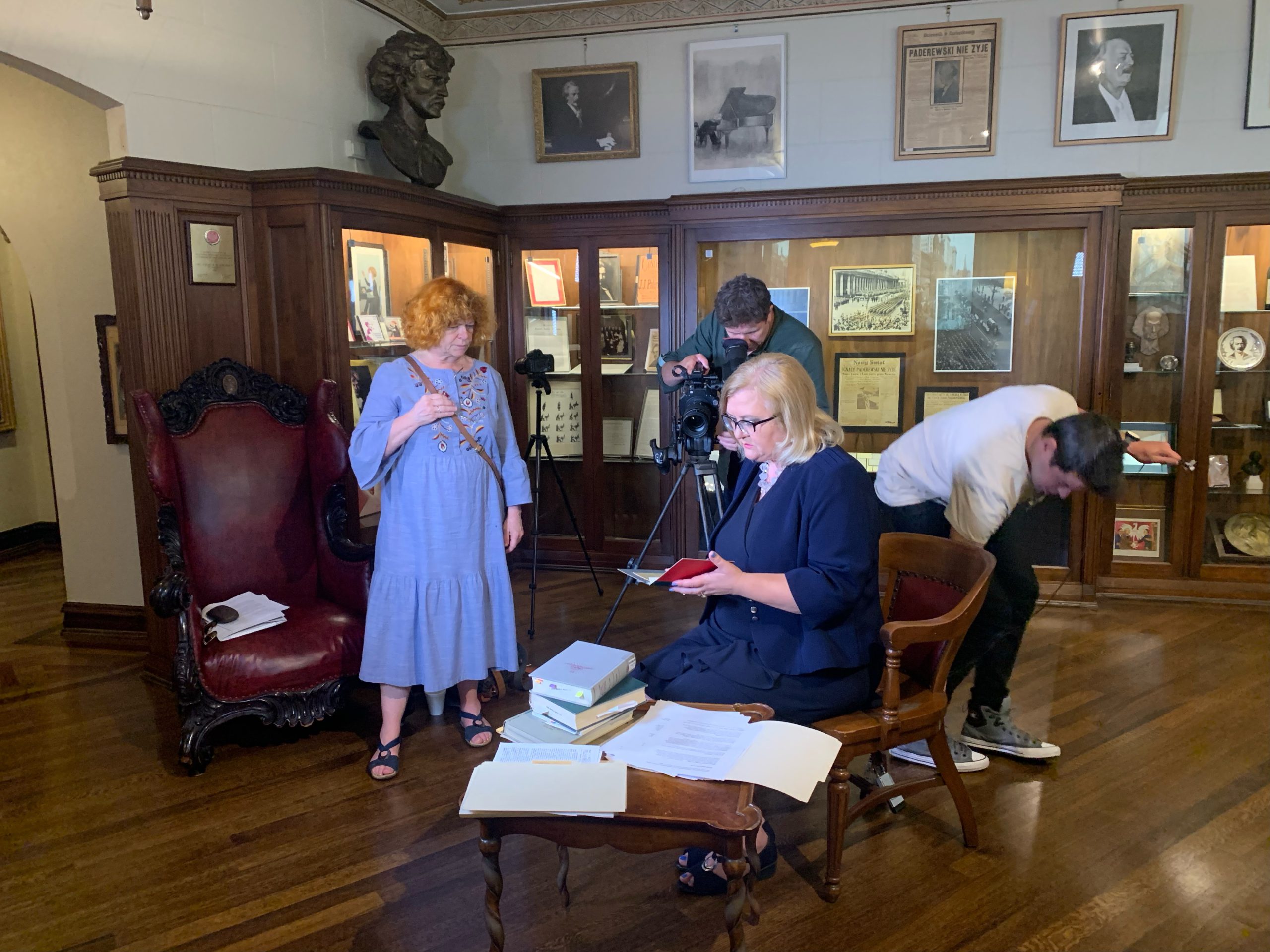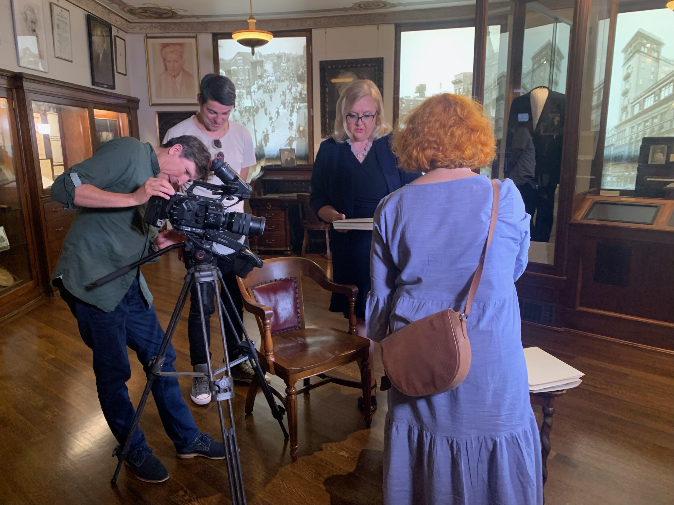 Maria Guzy, Beata Merkowska, Jeremi Grzywa, and Piotr Grymek--production team from the Kraków branch of TVP Historia--are here recording a program entitled, "Filantrop: Erazm Jerzmanowski, Wielki Zampomniany" ("Philanthropist: Erazm Jerzmanowski, the Great Forgotten").