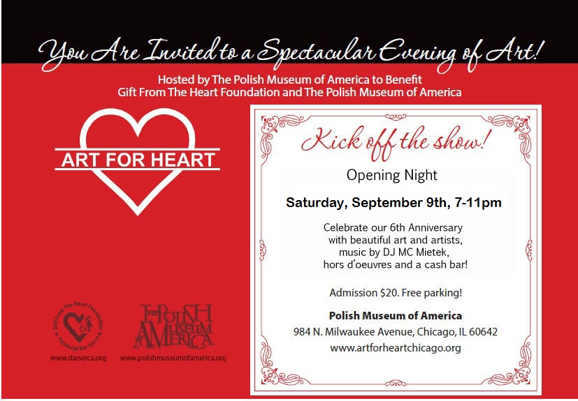 Art for Heart is back for its seventh year benefitting Gift from the Heart Foundation (Dar Serca) and the Polish Museum of America: Saturday September 9th to Tuesday October 3rd