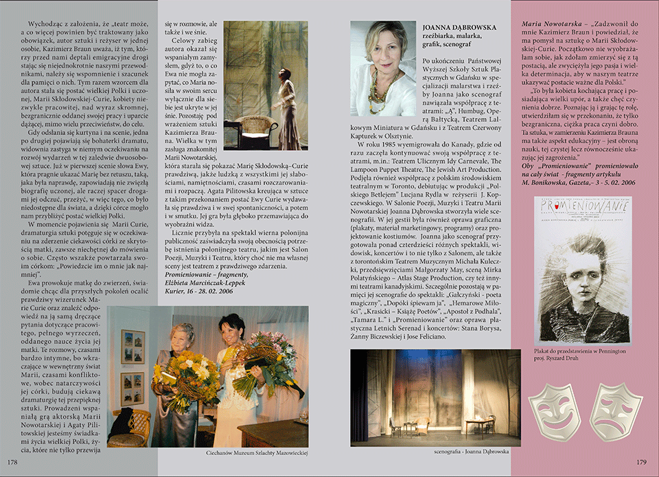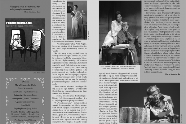 “It was a woman who loved her work and who was really persistent, but who also desired to do good. Through the process of getting to know her and playing this role, I became convinced that only immense, hard work can do good. It has been Kazimierz Braun’s intention for this play to have an educational aspect – it defends science, the pure one, but at the same time it also shows its danger.” – Maria Nowotarska