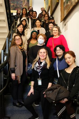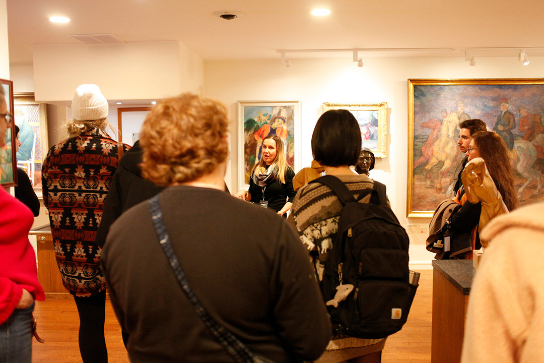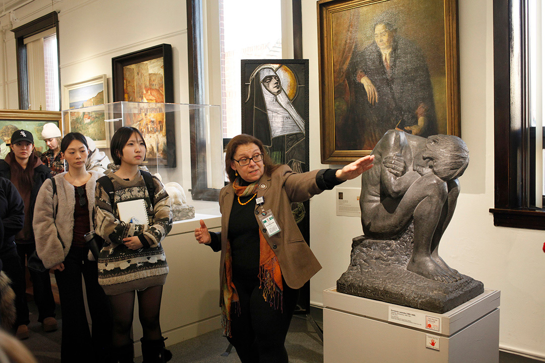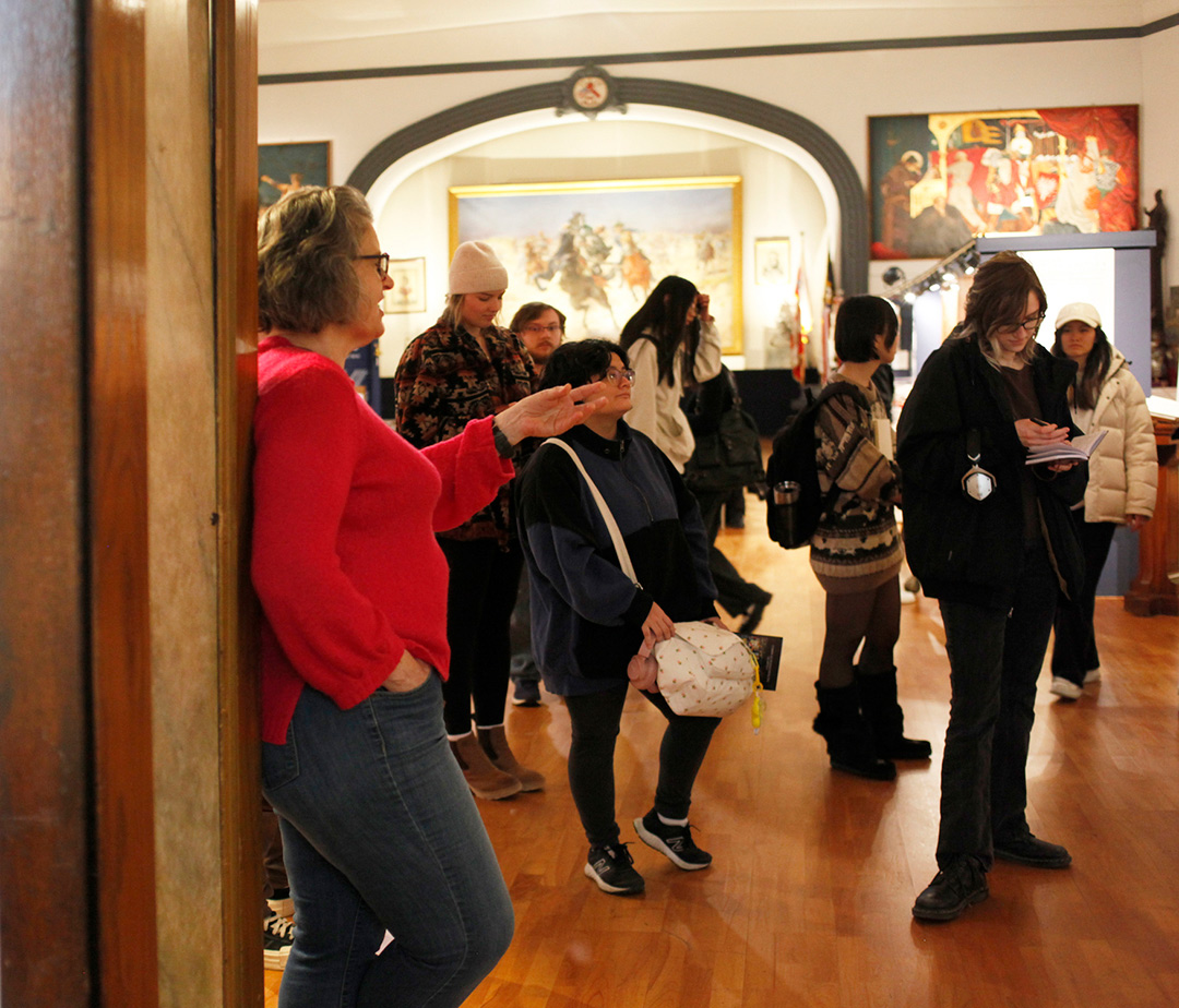 On March 6, 2025, a group from the School of the Art Institute of Chicago visited the Polish Museum of America (PMA). Students from the course The Sites and Sounds of Eastern Europe, led by Dr. Katarzyna Grochowska, Assistant Professor, Adjunct in the Department of Liberal Arts, toured the Museum's Great Hall, Art Gallery, and Paderewski Room with Beata Pawlikowska, PMA Tour Guide, and Julita Siegel, PMA Curator.