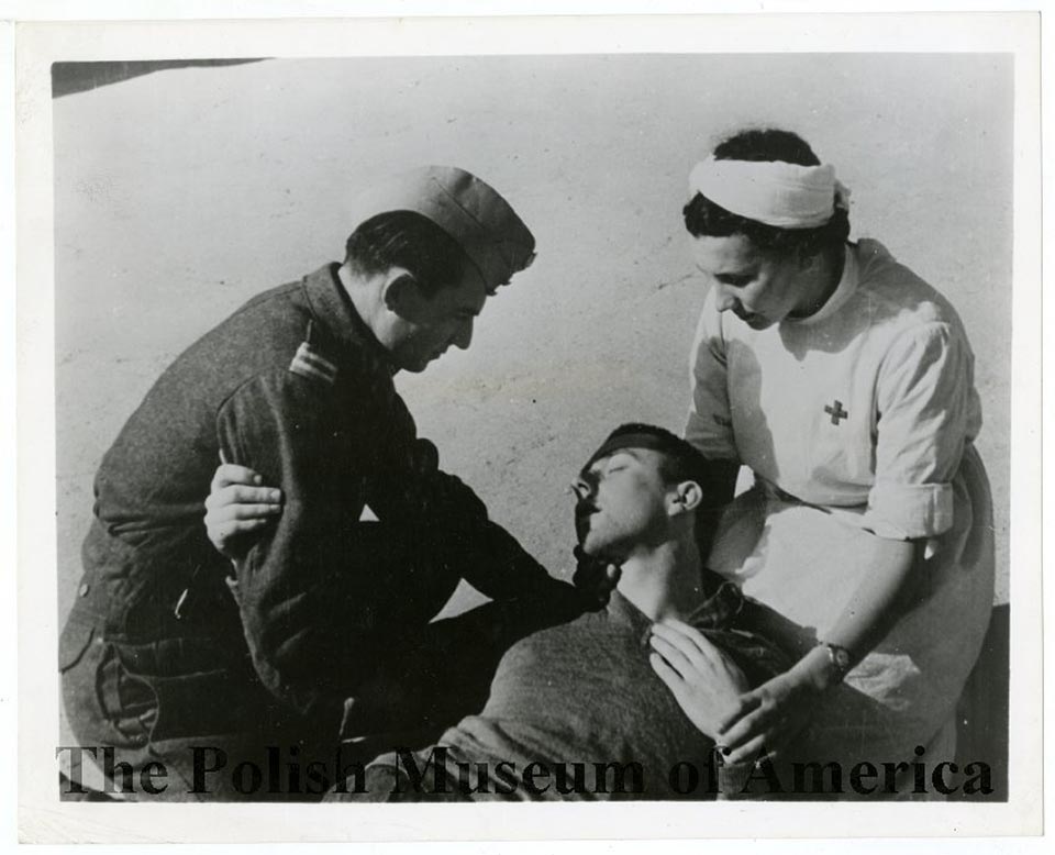 Nurse of the Polish Red Cross carries help to Polish soldiers fighting in the Mediterranean theatre of war