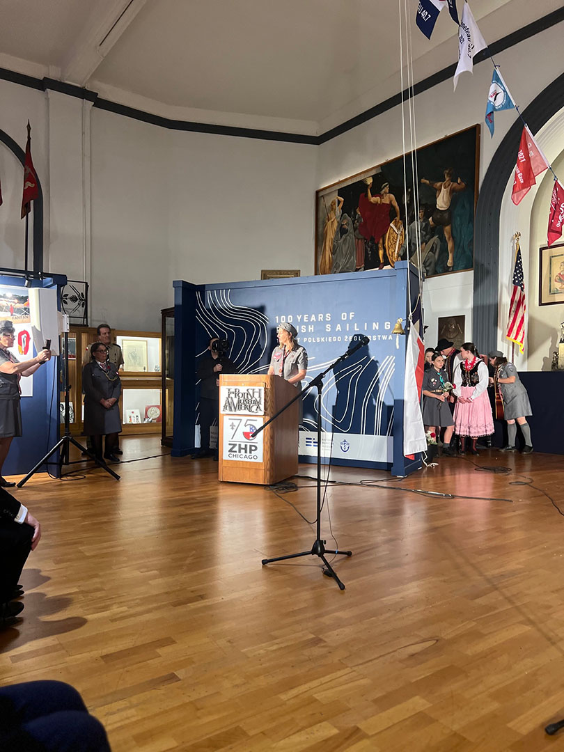 Following Mass, participants marched to the Museum for a commemorative ceremony and an inspiring program led by the talented scout youth. The program featured traditional folk dances, songs, and moving speeches presented by the members of ZHP. We were honored to welcome Vice Consul Agata Grochowska, who shared a few heartfelt words with us.