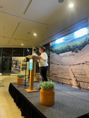 W czwartek, 23 października 2025 r., Muzeum Polskie w Ameryce wzięło udział w całomiesięcznym programie Journey Chicago prezentowanym przez Chicago Cultural Alliance. MPA uczestniczyło w Homeratonie, organizowanym przez Greckie Muzeum Narodowe i Uniwersytet Illinois w Chicago, podczas którego w przeciągu dwóch dni odczytany został cały tekst Odysei Homera. Różne organizacje wzięły w nim udział, czytając księgi tej epopei w wielu językach. Małgorzata Kot, dyrektor zarządzająca, oraz Beata Pawlikowska, pracownik MPA, czytały na przemian po polsku i po angielsku Pieśń 11, w której Odyseusz odwiedza Hades. Barbara Kożuchowska, pracownik MPA, propagowała działalność Muzeum. Możliwość udziału w Homeratonie i przybliżenia słuchaczom heroicznych czynów Odyseusza, podczas jego 10-letniej tułaczki po morzu pełnym niebezpieczeństw i wyzwań, była wspaniałym przeżyciem.