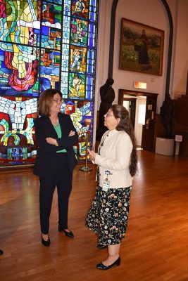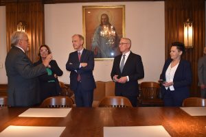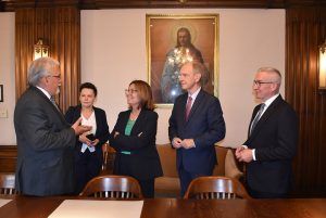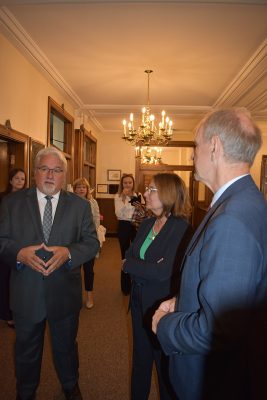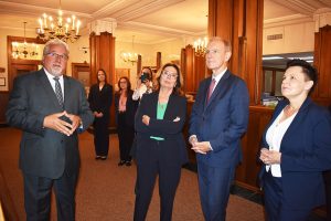The delegation was first welcomed by the President of the Polish Roman Catholic Union of America and Chairman of the Board of Directors of the Polish Museum of America, James Robaczewski, who also led a tour of the PRCUA offices. Present were PRCUA Vice President and Vice Chair of the PMA Board, Misia Jaminski and PRCUA Treasurer Agnieszka Bastrzyk.