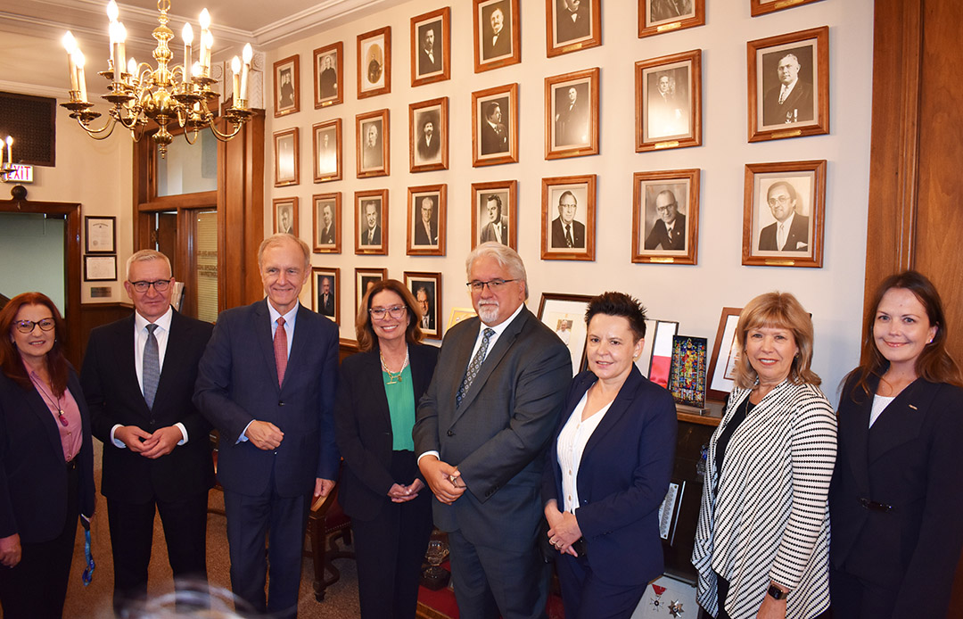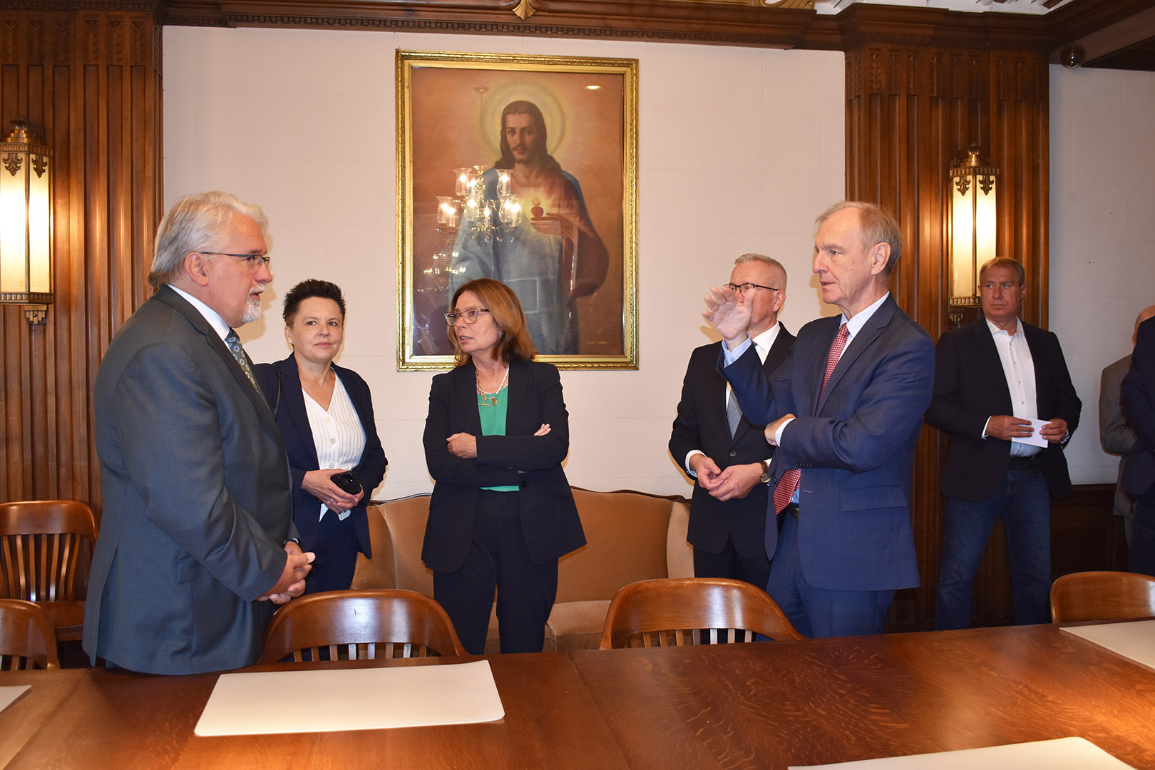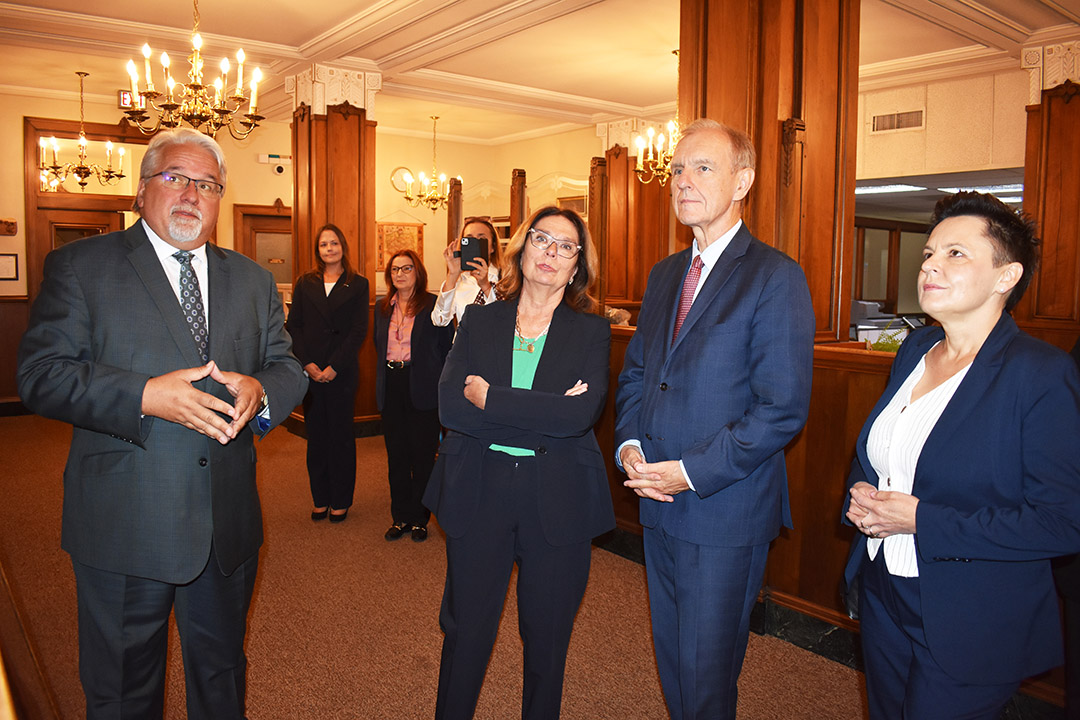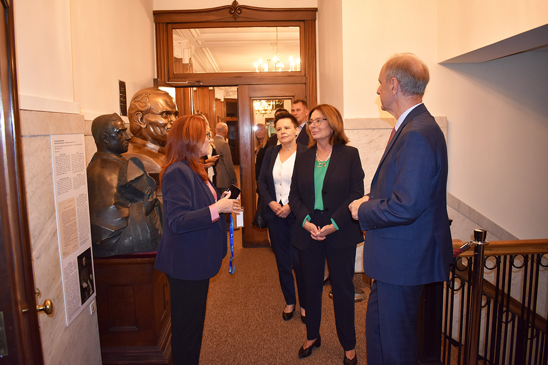 The delegation was first welcomed by the President of the Polish Roman Catholic Union of America and Chairman of the Board of Directors of the Polish Museum of America, James Robaczewski, who also led a tour of the PRCUA offices. Present were PRCUA Vice President and Vice Chair of the PMA Board, Misia Jaminski and PRCUA Treasurer Agnieszka Bastrzyk.