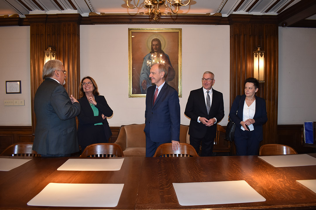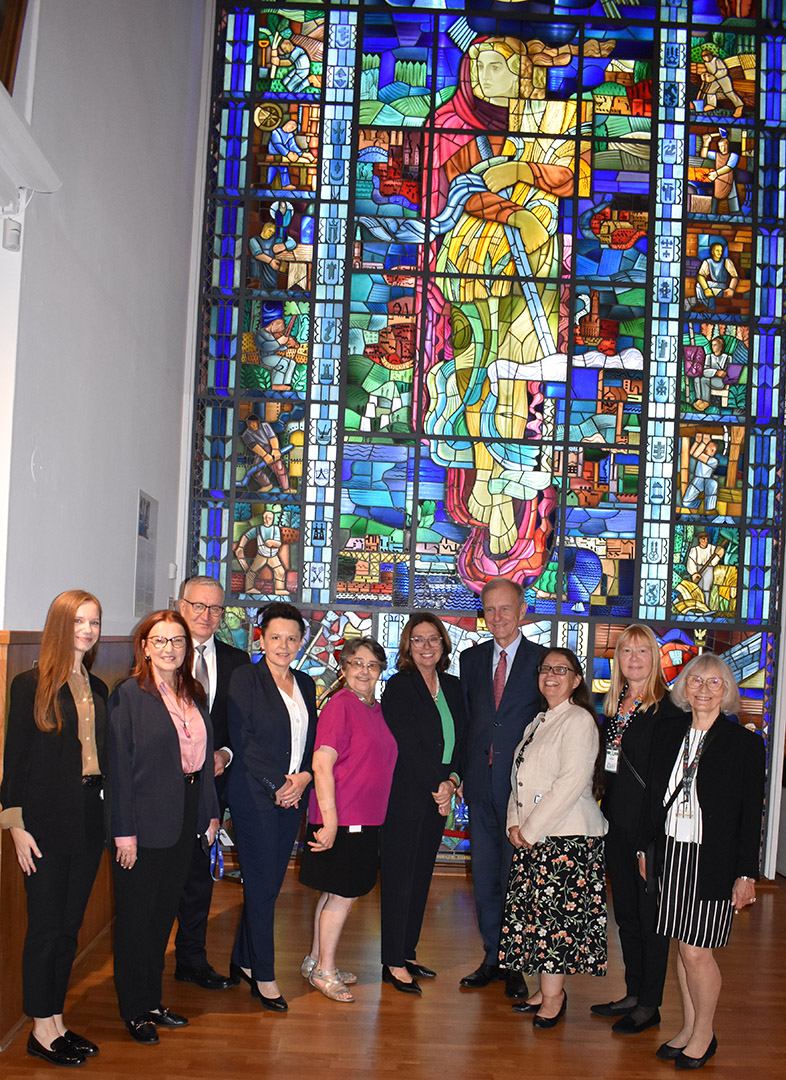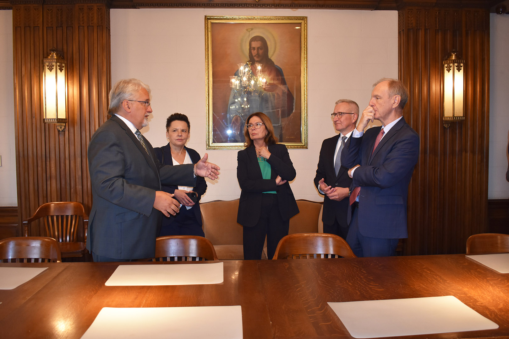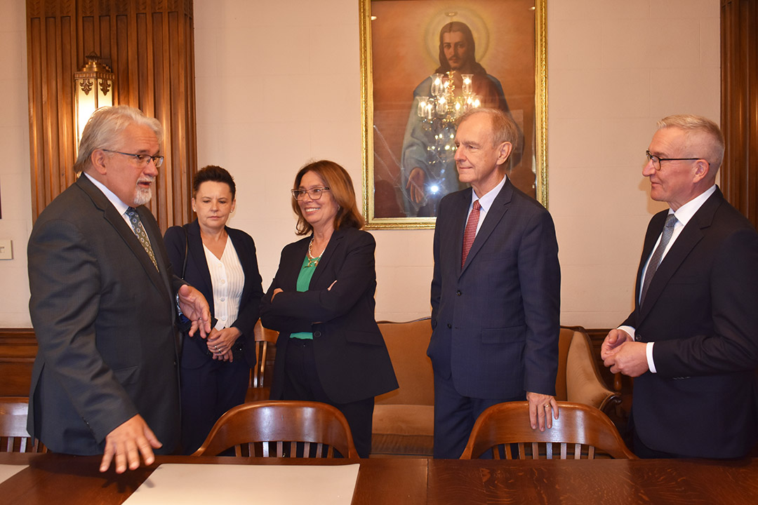 The delegation was first welcomed by the President of the Polish Roman Catholic Union of America and Chairman of the Board of Directors of the Polish Museum of America, James Robaczewski, who also led a tour of the PRCUA offices. Present were PRCUA Vice President and Vice Chair of the PMA Board, Misia Jaminski and PRCUA Treasurer Agnieszka Bastrzyk.