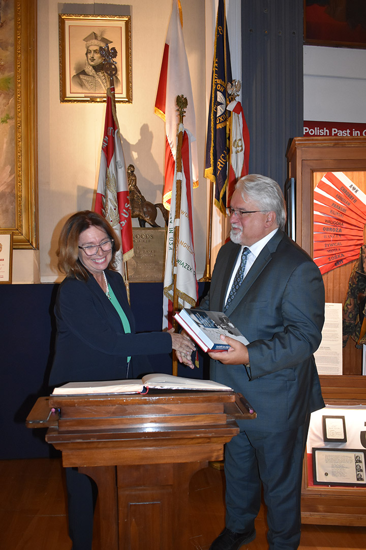 Delegacja zwiedziła nasze kolekcje, w tym Pokój Paderewskiego, Galerię Sztuki oraz Salę Główną, a także uczestniczyła we wspólnym lunchu. Serdecznie dziękujemy za te wyjątkową wizytę i za wsparcie dla zachowania polskiego dziedzictwa w Ameryce. Szczególne podziękowania kierujemy również do Konsulatu Generalnego RP w Chicago za współpracę i organizację tej wizyty.