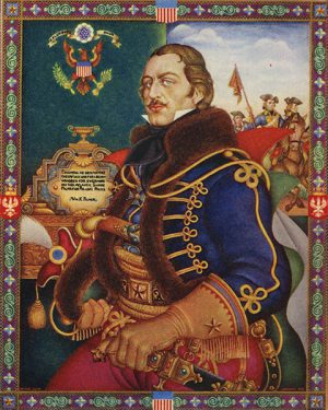 General Casimir Pułaski (1747-1779) was a Polish and American hero, a nobleman who fought for Poland’s freedom before being partitioned by its three neighbors: Russia, Prussia, and Austria. He was involved in the unsuccessful Confederation of Bar against the King of Poland and Russian influence, who were attempting to limit the power of the Polish-Lithuanian Commonwealth’s wealthy magnates. After this failed mission, he was forced into exile. He immigrated to France, where he met Benjamin Franklin, who recommended he travel to America and help the American Colonial Army in the War of Independence against the British Empire (1775-1783). Pulaski arrived in Massachusetts in 1777 and became famous for creating and training the first cavalry unit in United States history, earning the title of the “Father of American Cavalry.”