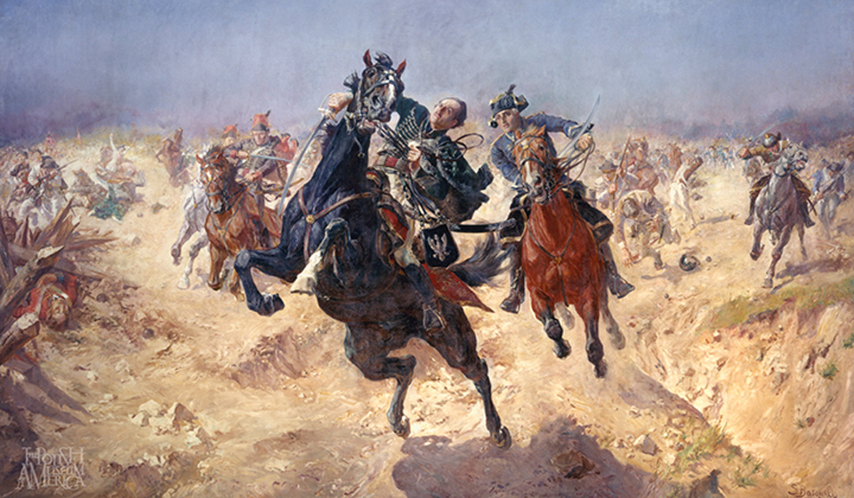 The PMA Archives hold original Pułaski documents, and the Museum proudly displays the monumental 1933 Pułaski at Savannah painting by Stanisław Kaczor Batowski (1866-1946). Unveiled at the 1933 Chicago World’s Fair, after display at the Art Institute of Chicago, the canvas was purchased and donated to the Museum by the Polish Women’s Alliance of America in 1939.