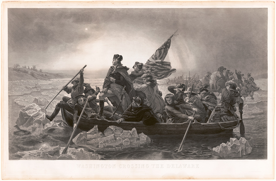 - Girardet, Paul. Washington Crossing the Delaware. 1853. 1 print : steel engraving ;, sheet 67 x 103 cm. Unprocessed in PR 13 CN 2020:082 (MCE size) [P&P]. Library of Congress Prints and Photographs Division Washington, D.C. 20540 USA. https://lccn.loc.gov/2020633689.