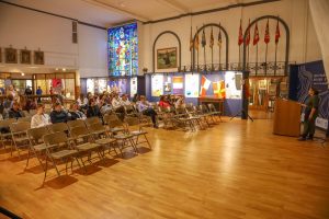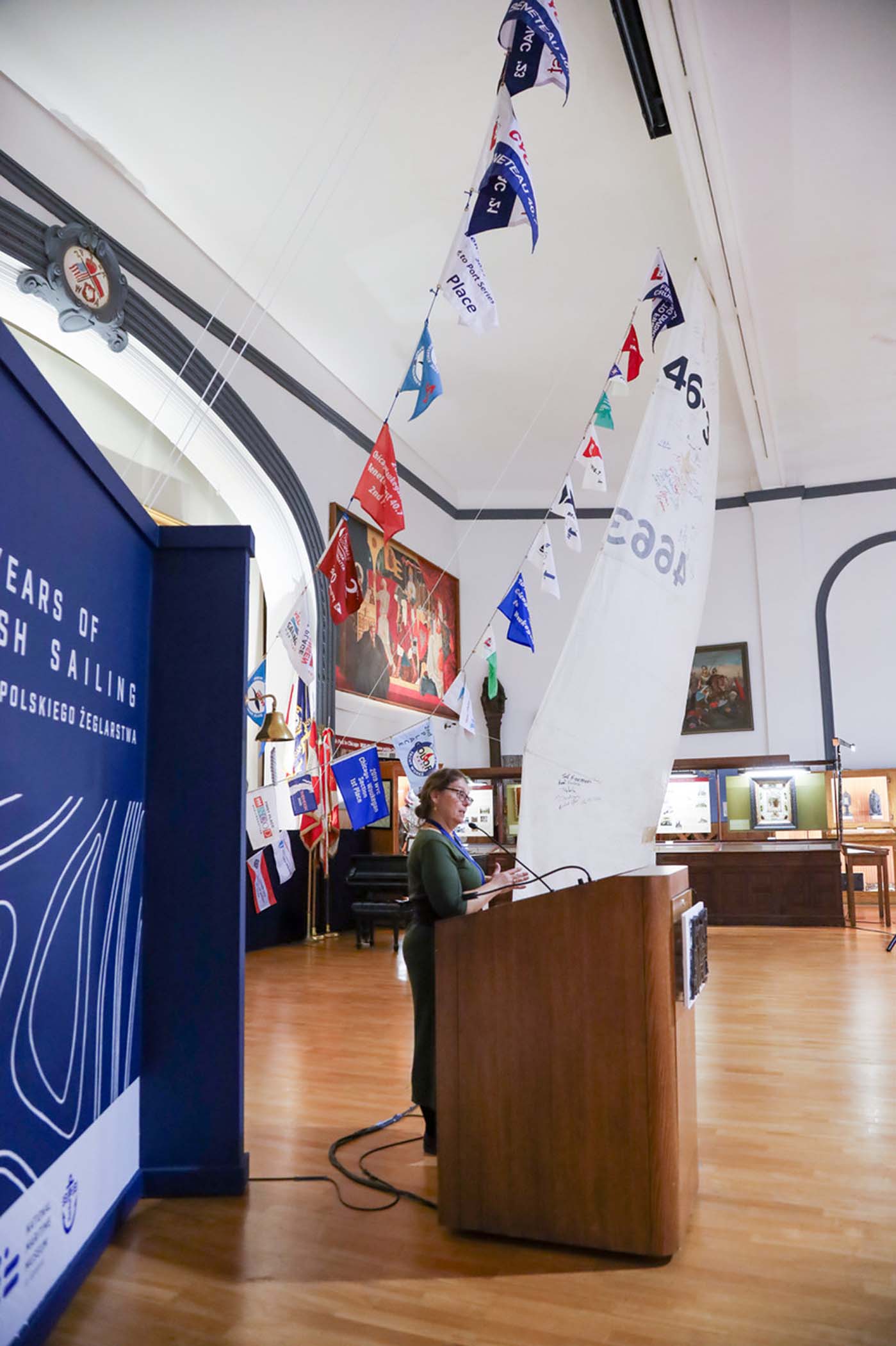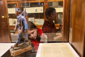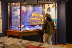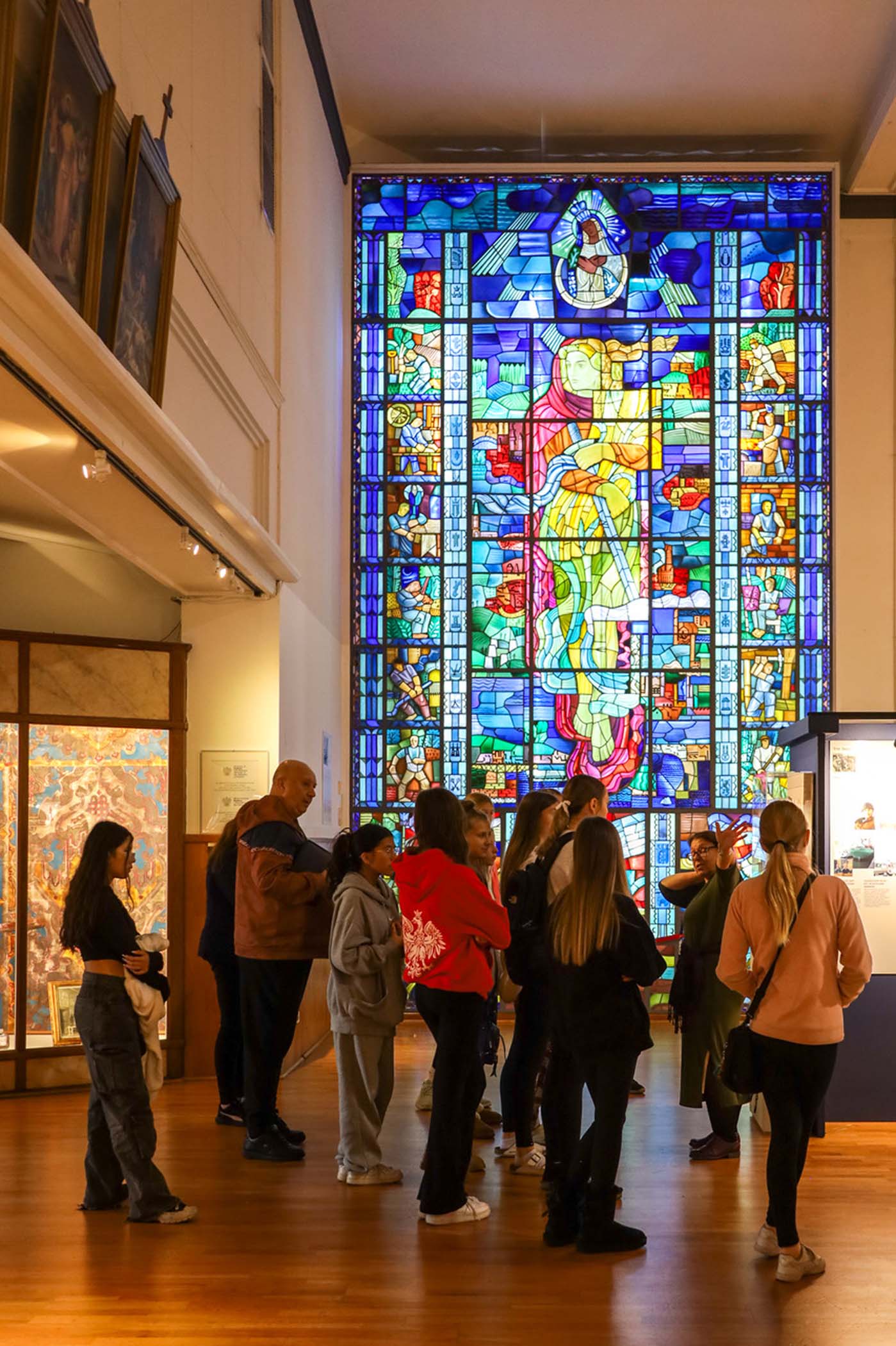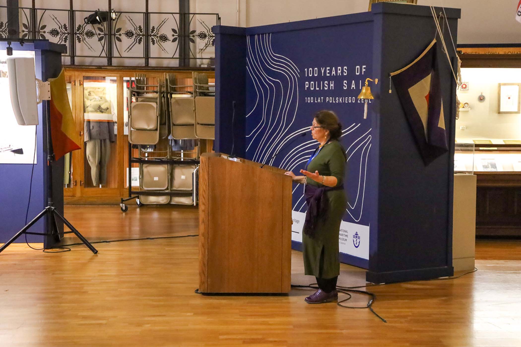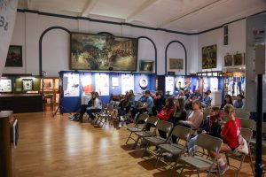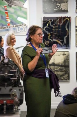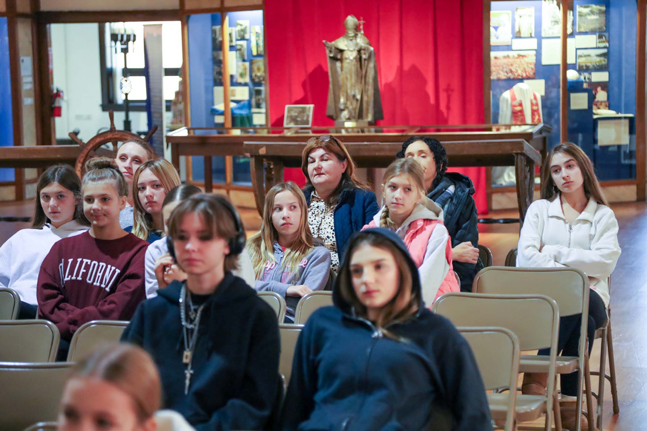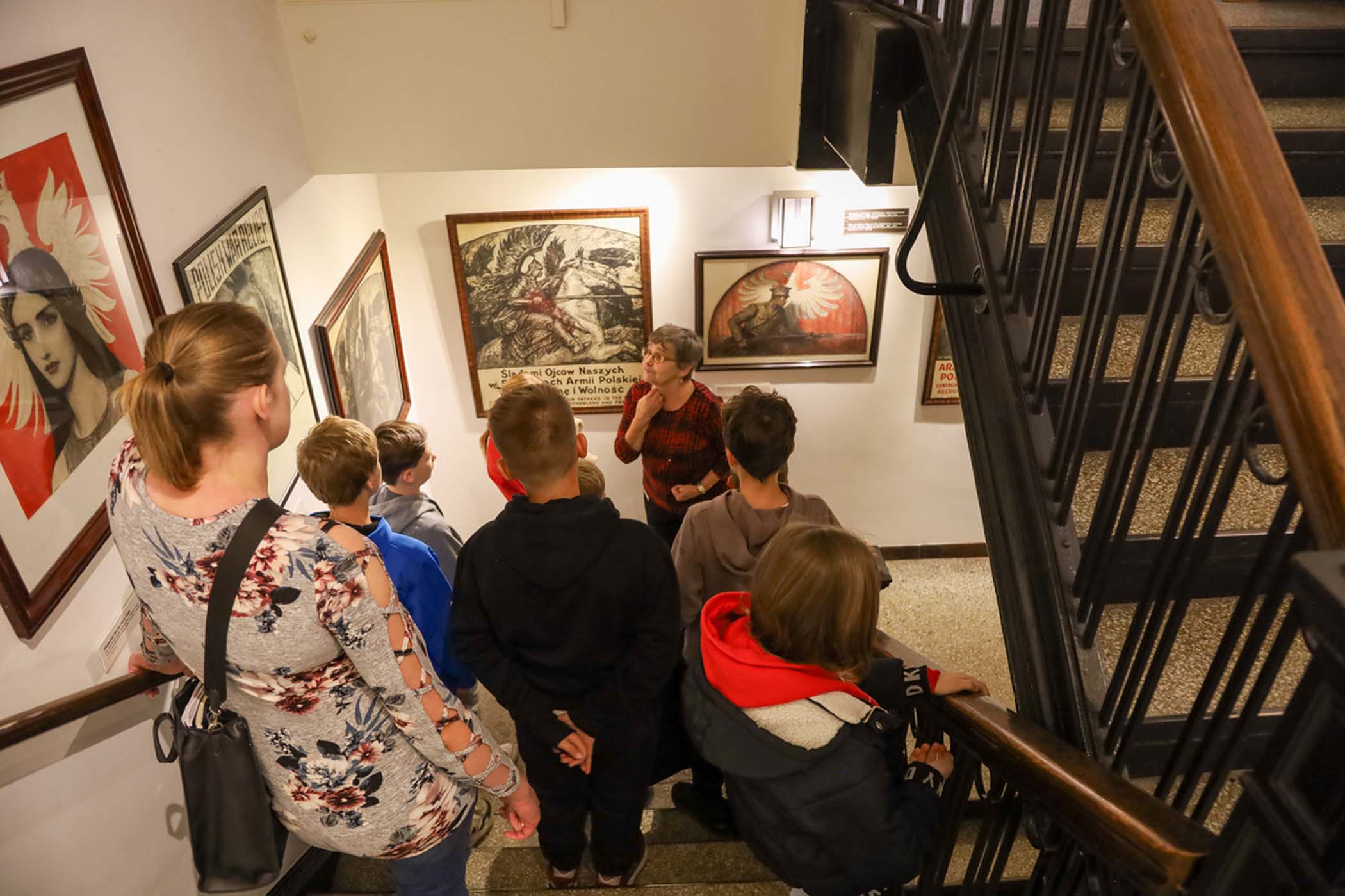 Students from the 6th grade through the third year of high school from the Jan Kochanowski Polish School in Norridge, IL, visited the Polish Museum of America on Saturday, November 2, 2024. The younger students, visiting the museum for the first time, were led through all the exhibits by Barbara Kożuchowska, who not only brought the exhibits to life but also engaged the students in lively discussion. The older students, who were visiting for the third time, were encouraged to delve into a single curated theme while visiting several of the galleries. This year they investigated Poland’s relationship with the sea in the interwar period. The students discussed several objects in depth and offered many insightful observations. The tour concluded with a group photograph in front of the full sail and pennants on display as part of the 100 Years of Polish Sailing exhibition.