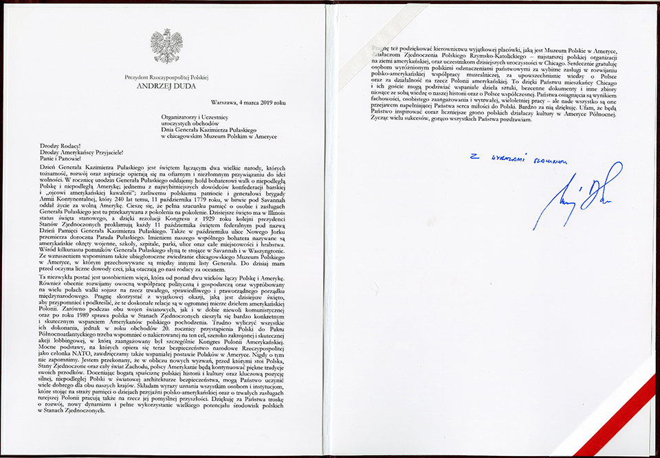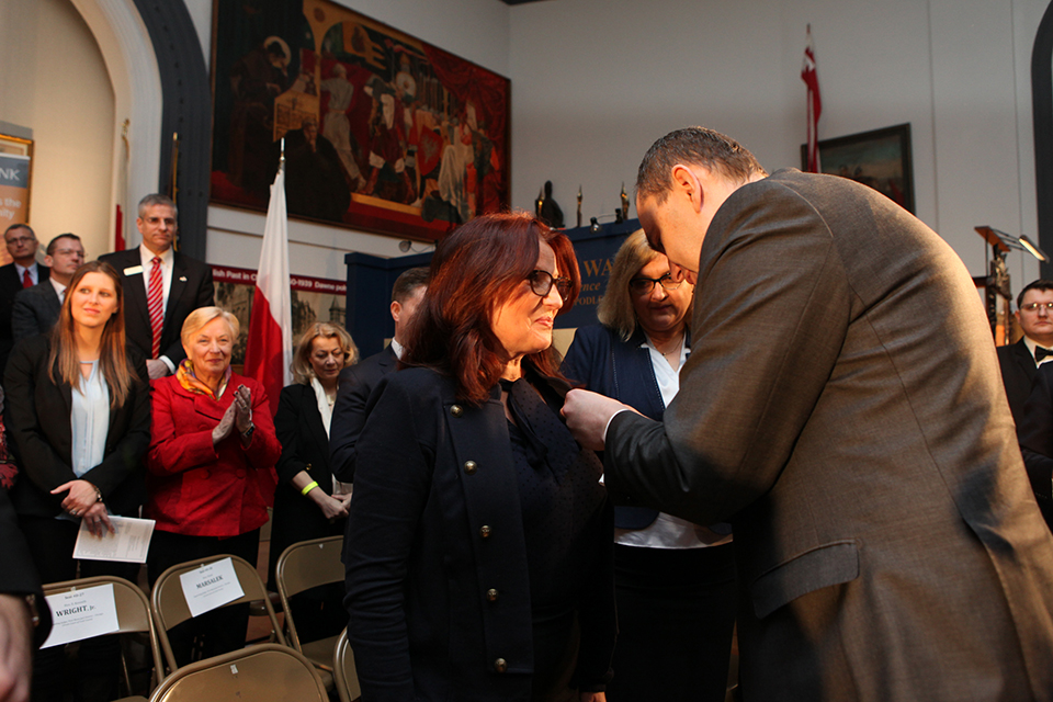 During the annual Pulaski Day Commemoration on March 4, 2019 at the Polish Museum of America, President of the Republic of Poland, Andrzej Duda, awarded state distinctions to the president and three employees of Polish Museum of America. On behalf of the President of the Republic of Poland the presentation of awards was performed by the Secretary of State in the Chancellery of the President of the Republic of Poland, Minister Adam Kwiatkowski. Based on Article 138 of the Constitution of the Republic of Poland and the law on awards and distinctions by virtue of order of the President of the Republic of Poland Andrzej Duda, the award is for exceptional contribution to the development of Polish-American cooperation in the field of museums, for dissemination of knowledge about Poland and activities undertaken for Polish diaspora in the United States of America. Richard Owsiany, President; Małgorzata Kot, Managing Director and Jan Loryś, historian, were awarded the Officer’s Cross of the Order of Merit of the Republic of Poland; and Halina Misterka, PMA Head Archivist the Knight’s Cross of the order of merit of the Republic of Poland.