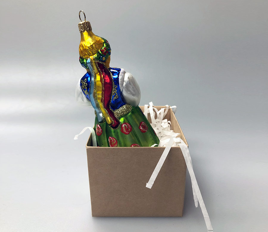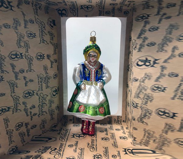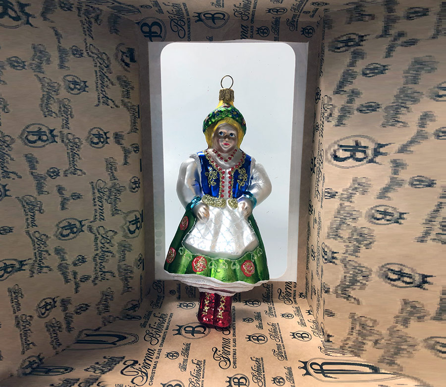 Bring home a bit of Polish tradition with this beautiful handmade glass ornament; perfect as a Christmas present for your loved one, or even to hang on your own Christmas tree. The ornament depicts a girl dressed in the traditional Kraków costume.