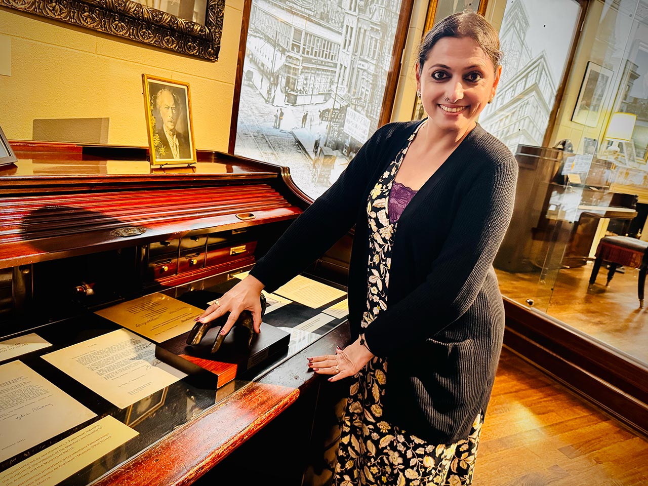 13 września 2025 roku Muzeum Polskie w Ameryce miało zaszczyt gościć Apekshę Niranjan – uznaną tancerkę, choreografkę i badaczkę z Mumbaju, specjalizującą się w klasycznym tańcu Bharatanatyam. Podczas wizyty, oprowadzana przez Sergio, z dużym zainteresowaniem poznawała historię Polski, poświęcając szczególnie wiele czasu sali im. Ignacego Jana Paderewskiego. Fascynowała ją postać wielkiego pianisty, męża stanu i filantropa, którego dziedzictwo wciąż inspiruje kolejne pokolenia.