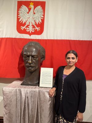 On September 13, 2025, The Polish Museum of America had the pleasure of welcoming Apeksha Niranjan, an acclaimed Bharatanatyam dancer, choreographer, and researcher from Mumbai. During her visit, she was guided through the Museum’s rich collections by Sergio, with particular interest in the history of Poland and the legacy of Ignacy Jan Paderewski. She spent considerable time in the Paderewski Room, exploring the life and achievements of the great statesman, pianist, and philanthropist.