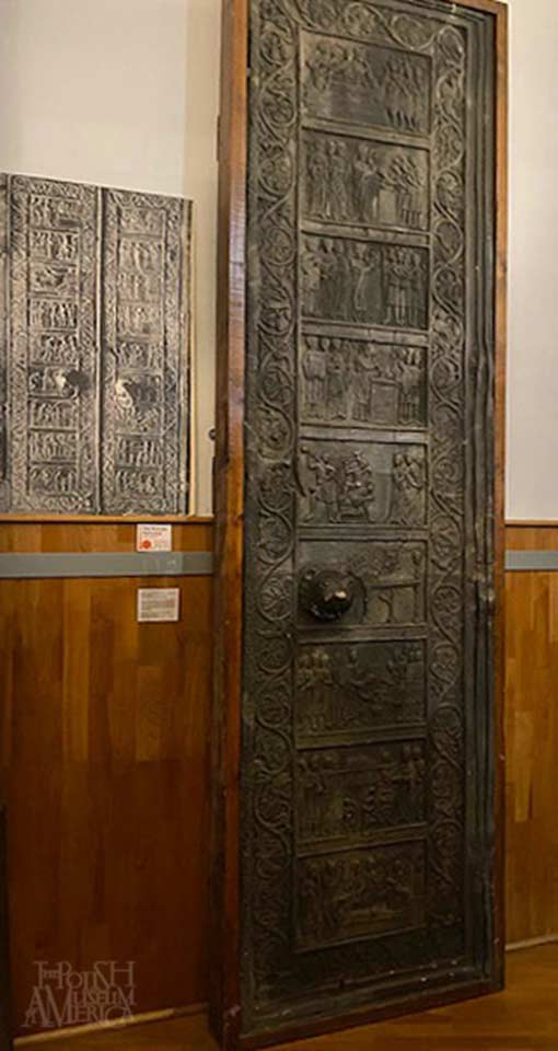 Photos present the PMA Gniezno doors, 1939 wood and plaster.