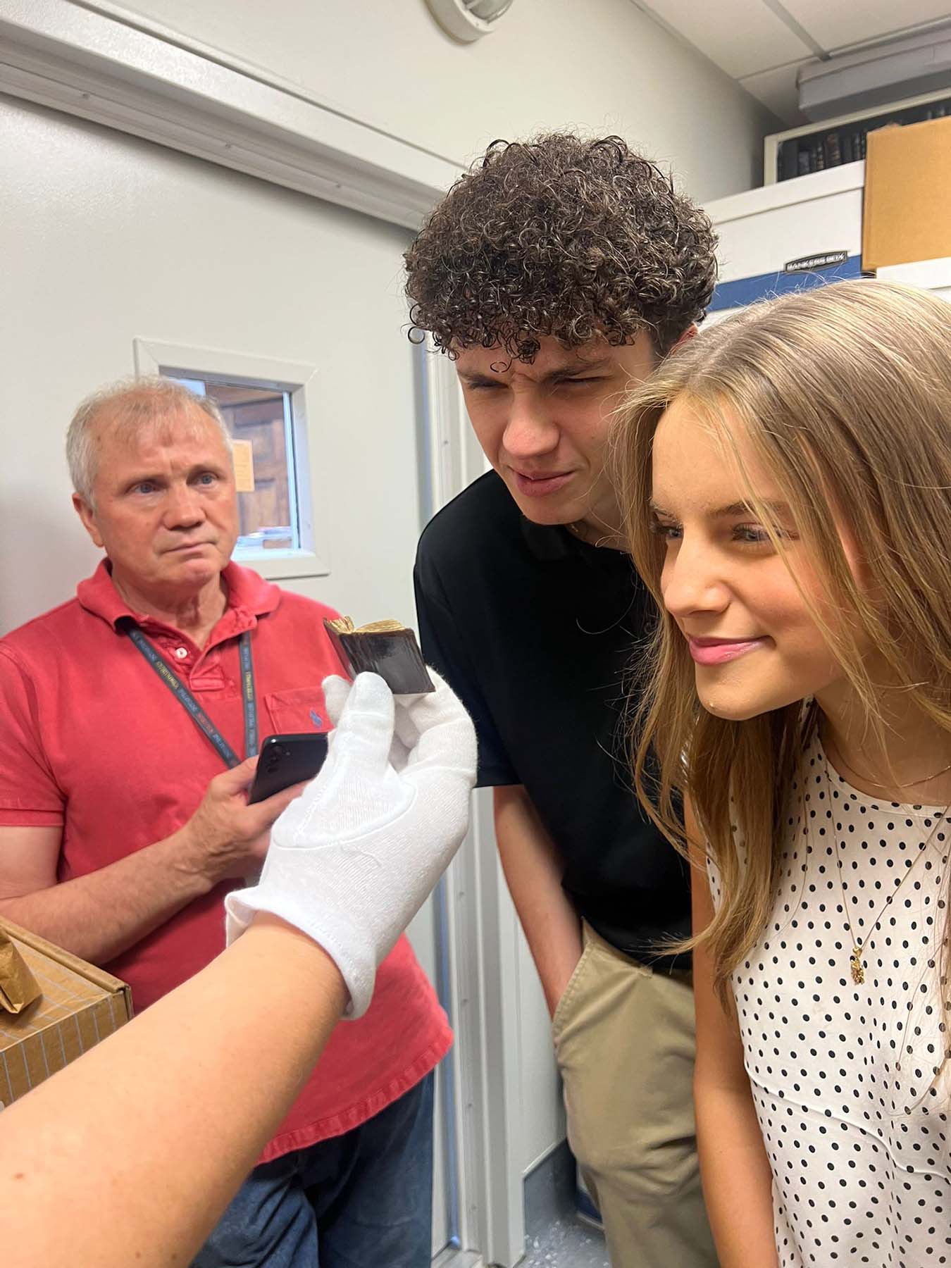 Podczas pobytu w Muzeum Olivia i Jacob poznali nasz zespół, zapoznali się z historią budynku MPA oraz odkryli bogate zbiory polskich artefaktów. Odwiedzili także Archiwum Rzadkich Książek i pracowali z unikatowymi dokumentami z Biblioteki MPA.