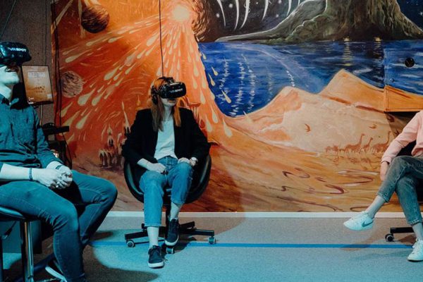The Polish Museum of America staff visited the Lithuanian Youth Center to experience an immersive VR animation based on Mikalojus Konstantinas Čiurlionis' paintings. Čiurlionis has special ties to Poland and the exhibit closes on May 31.