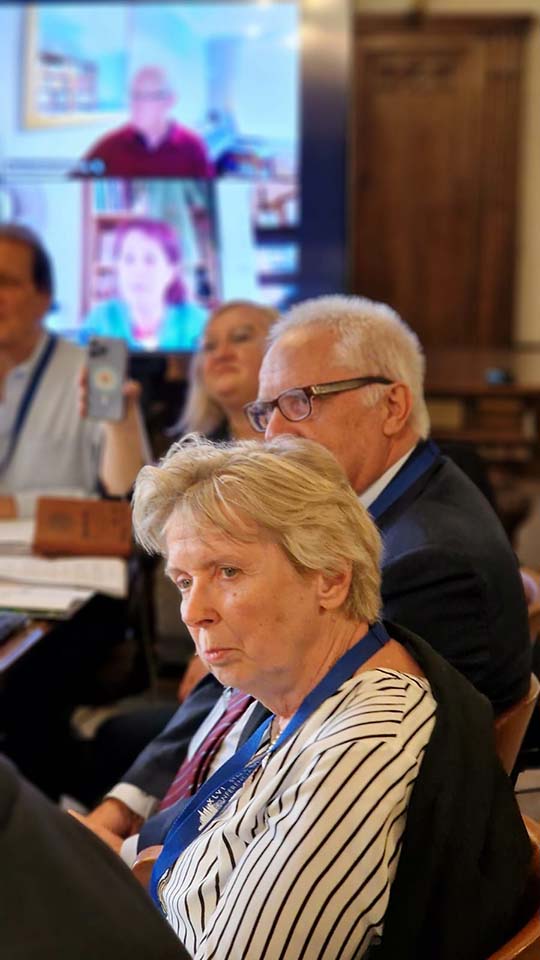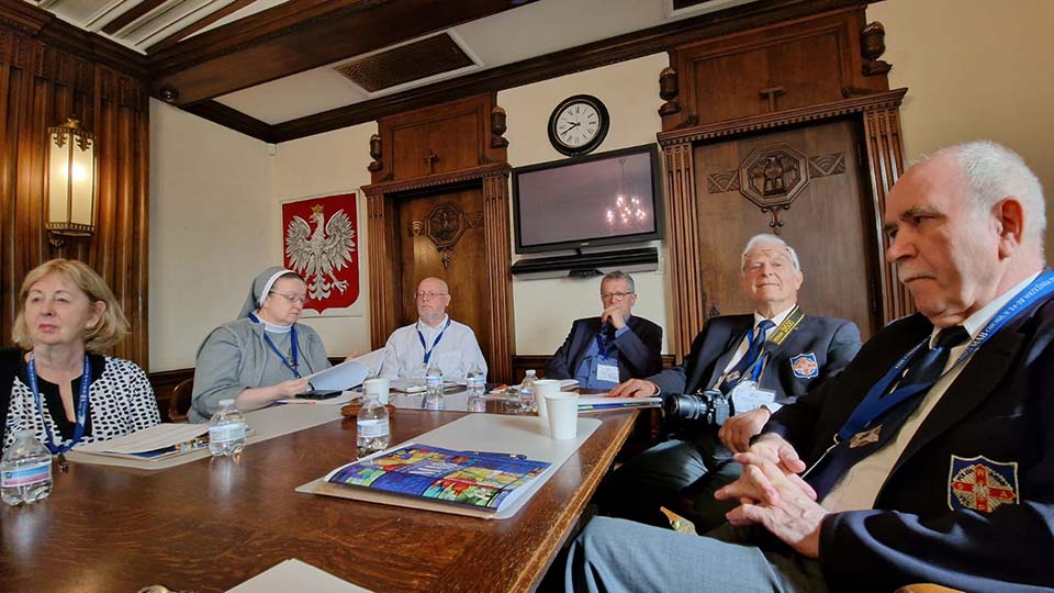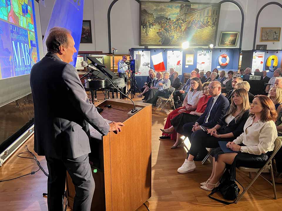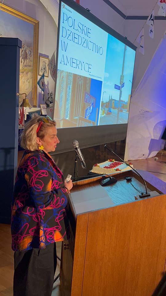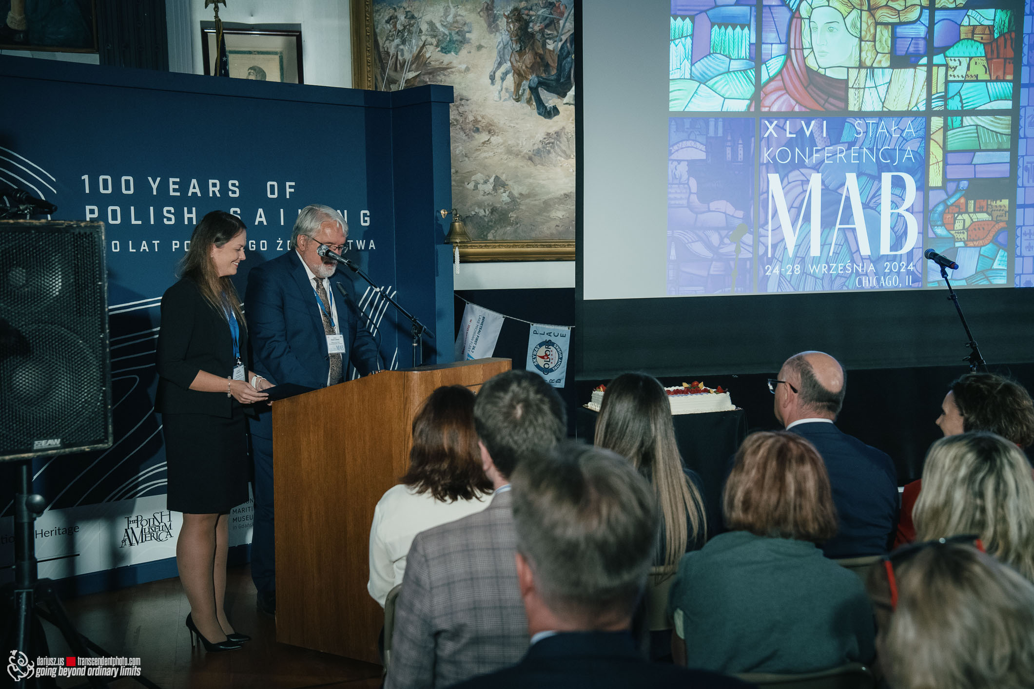 The official start of the convention took place in the evening, with Ryszard Owsiany, President of the Polish Museum of America, leading the program and welcoming the gathered guests. One of the first speakers was James Robaczewski, Chairman of the Board of Directors of the Polish Museum of America and President of the Polish Roman Catholic Union of America. His speech was translated from English into Polish by Agnieszka Bastrzyk, Treasurer and National Secretary of the PRCUA. This was followed by remarks from Misia Jaminski, representing the Polish American Congress, and then by Julia Konopka-Żołnierczuk from the National Library of Poland. Then, Teresa Ackermann from the Kościuszko Museum in Solothurn distributed a surprise gift to all attendees—a commemorative publication from the previous conference. Sylwia Tryc, Acting Director of the National Institute of Polish Cultural Heritage Abroad POLONIKA, fulfilled her promise made in Solothurn by presenting a collective publication of all the papers from that event. Speeches were also delivered by Agata Grochowska, Vice Consul and Head of the Department of Polish American Community, Communication and Public Diplomacy at the Consulate General of the Republic of Poland in Chicago, Jolanta Miśkowiec, Director of the Department of the Ministry of Culture and National Heritage and Mateusz Szpytma, Deputy President of the Institute of National Remembrance. We extend our thanks to all the speakers for their insightful remarks.