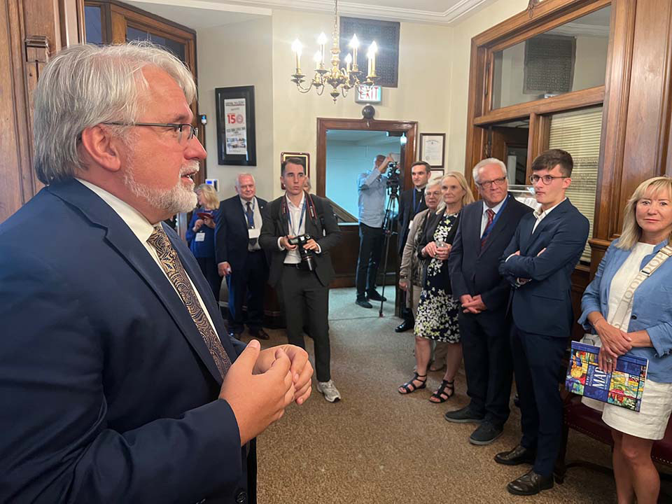 After lunch at the Polish Roman Catholic Union of America canteen, we visited the historic Holy Trinity Church, where we attended a solemn Holy Mass. Following the service, a special museum tour was arranged for our honorary guests, including the delegation from the Ministry of Culture and National Heritage, the Consul of the Republic of Poland in Chicago, and representatives from various state institutions and non-governmental organizations. Our guests had the opportunity to explore our rich collections and exhibits.