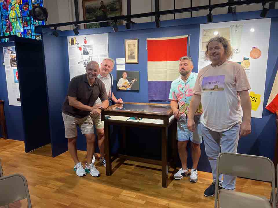 Grupa zwiedziła nasze Muzeum, w tym najnowszą wystawę „100 lat polskiego żeglarstwa”, i pozostawiła wyjątkowy ślad, składając autografy na żaglu będącym częścią ekspozycji. Goście odwiedzili również Archiwa Muzeum, gdzie w towarzystwie naszej archiwistki, Haliny Misterki, mieli okazję zgłębiać zbiory. Zagrali nawet fragment jednej ze swoich piosenek, wprowadzając nas w klimat morskich opowieści. Mieli także przyjemność spotkać się z dr Ewą Radwańską.