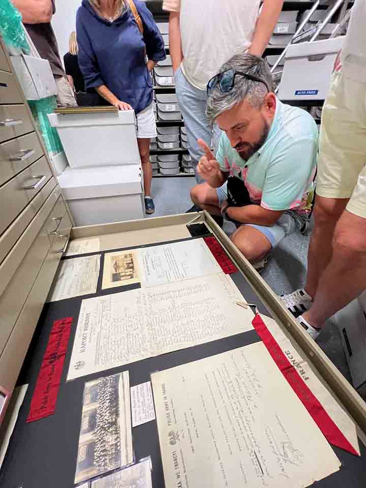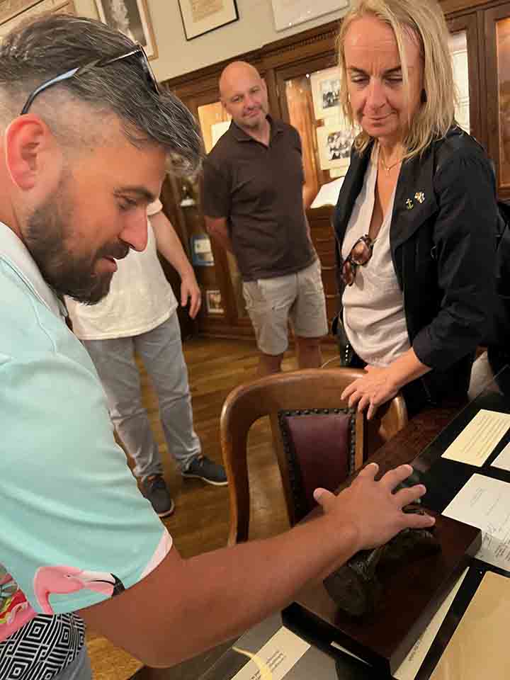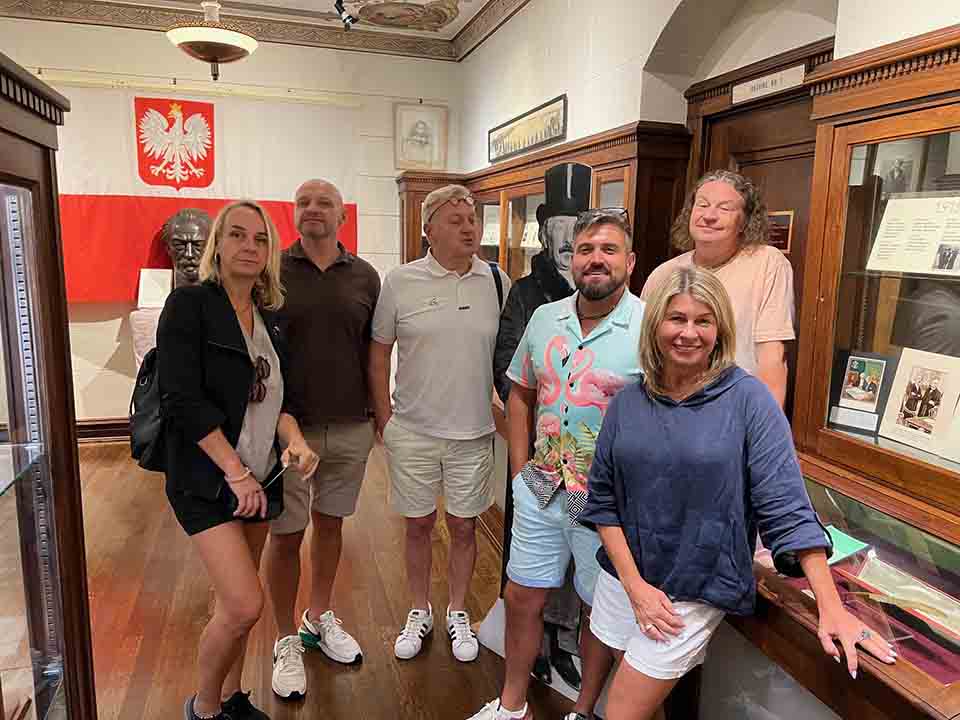 The group toured our Museum, including the newest exhibition, “100 Years of Polish Sailing,” leaving a lasting mark by signing the sail that is part of the display. They also visited the Museum’s Archives, where, accompanied by our archivist Halina Misterka, they had the opportunity to explore the collection. The guests even played a fragment of one of their songs, bringing us into the atmosphere of maritime stories. They also had the pleasure of meeting Dr. Ewa Radwańska.