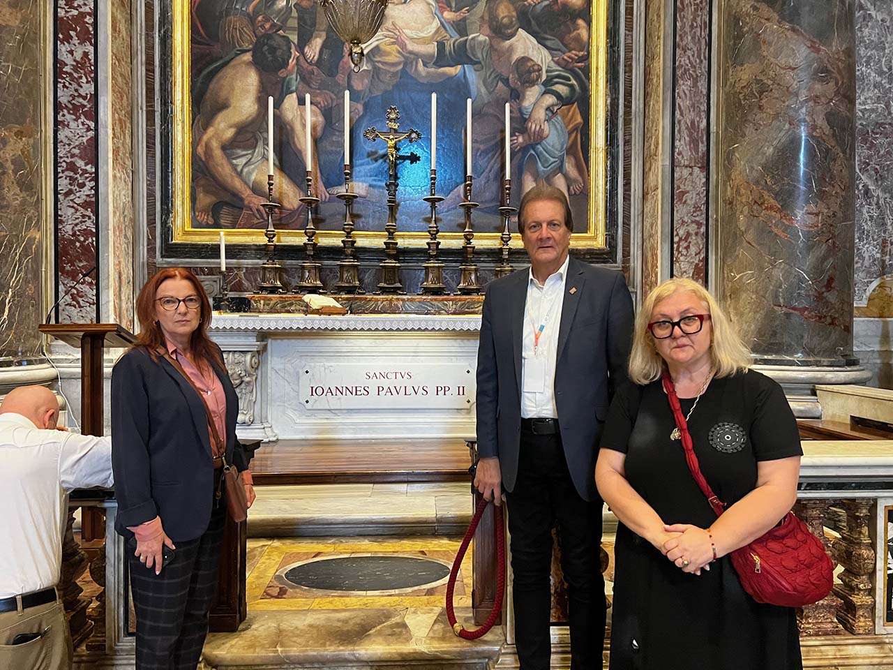 The conference offered a rich and memorable program. On September 9, our representatives delivered a report on the 46th session, which we proudly hosted in Chicago in 2024, and presented the post-conference publication from that event. We warmly thank the POLONIKA Institute for publishing this important volume, which preserves the work and legacy of the previous session. In addition to the sessions and discussions, participants enjoyed a number of exceptional experiences, including: guided tours of Rome, a visit to the Embassy of the Republic of Poland in Italy and the Vatican, a general audience with the Pope, the exhibition “The Polish Queen on the Capitol: Maria Kazimiera and the Royal Sobieski Family in Rome,” a trip to Monte Cassino and the Museum of the 2nd Polish Corps, as well as a visit and Holy Mass in St. Peter’s Basilica, at the altar where Saint John Paul II rests.