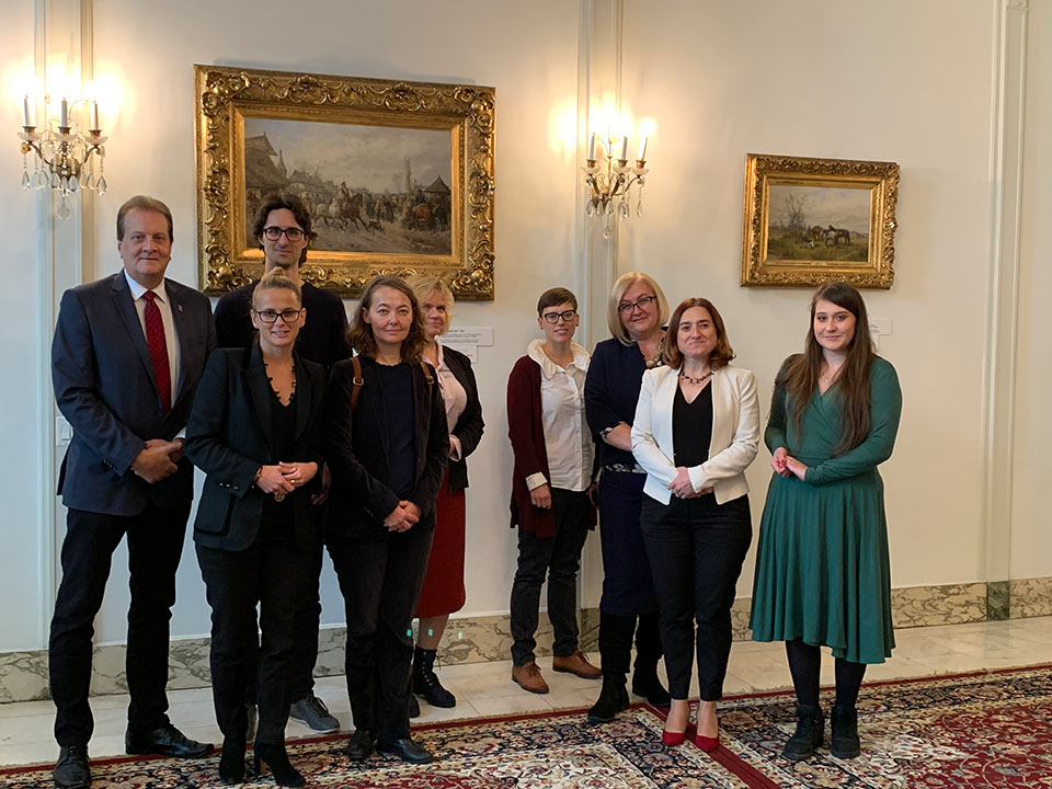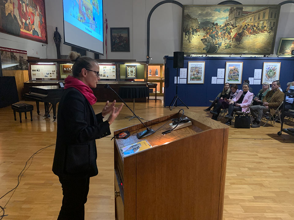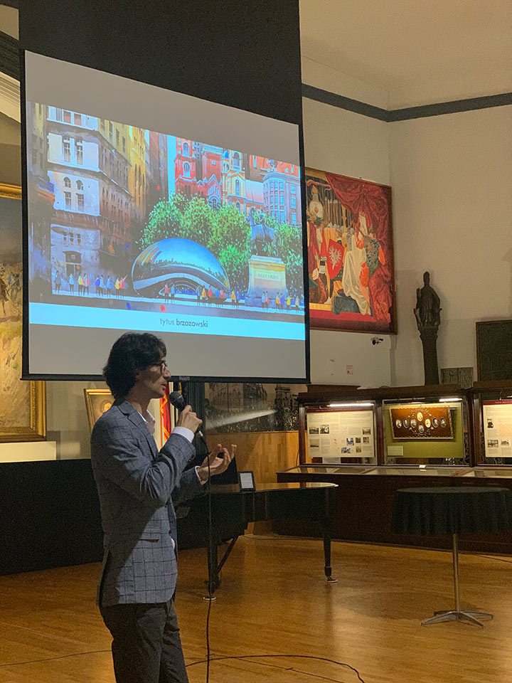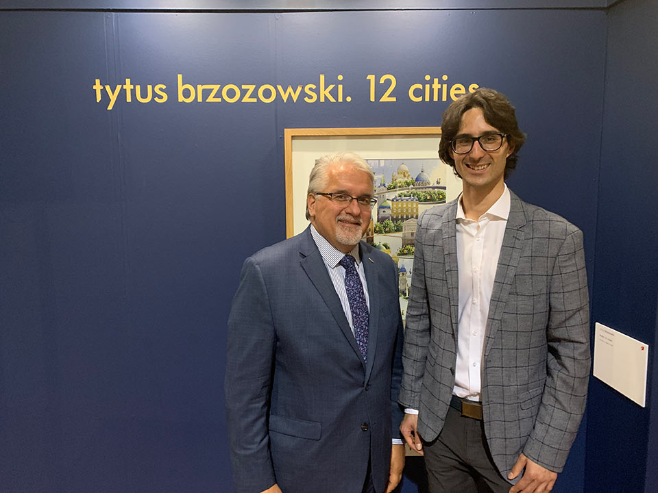 On November 12 the Polish Museum of America, in cooperation with the Polonika Institute hosted a "Meet the Artist" reception and official exhibit opening of "12 Cities" by Polish artist Tytus Brzozowski. The exhibit comprises paintings of 12 selected cities that have a sizable Polish community. Each painting includes Polonian and city points of interest that intertwine into a collage of the subject city. Featured cities include Chicago, Paris, Lwow, Vienna, Rapperswil, and Wilno. Brzozowski takes you on the journey of discovery and highlights the uniqueness and the impact of the Polish communities in each of the cities. The "12 Cities" exhibit will be on display through December 11 at the Polish Museum of America.