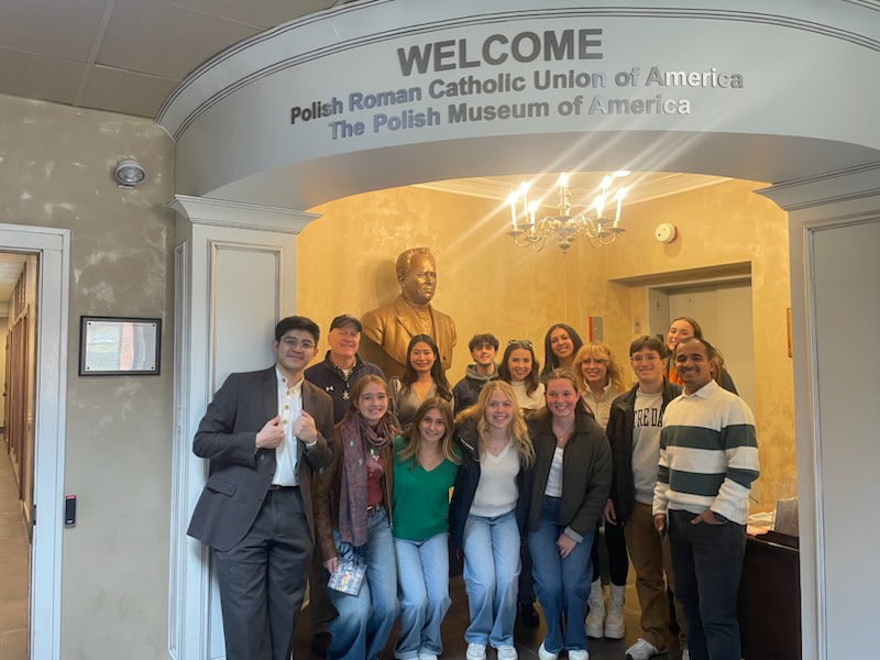 On Saturday, March 28, The Polish Museum of America had the pleasure of welcoming students from the University of Notre Dame in Indiana. The group was accompanied by Dr. Anne Seuland Fr. Jim Lies, with some of the students being involved with Catholic initiative Caritas, and will be serving in Lublin during the summer. Tour guide Sergio Romero guided the students through the different exhibits of the museum like the Kościuszko and Pulaski collections. The group was very attentive and kind, showing great interest in the history of the museum.